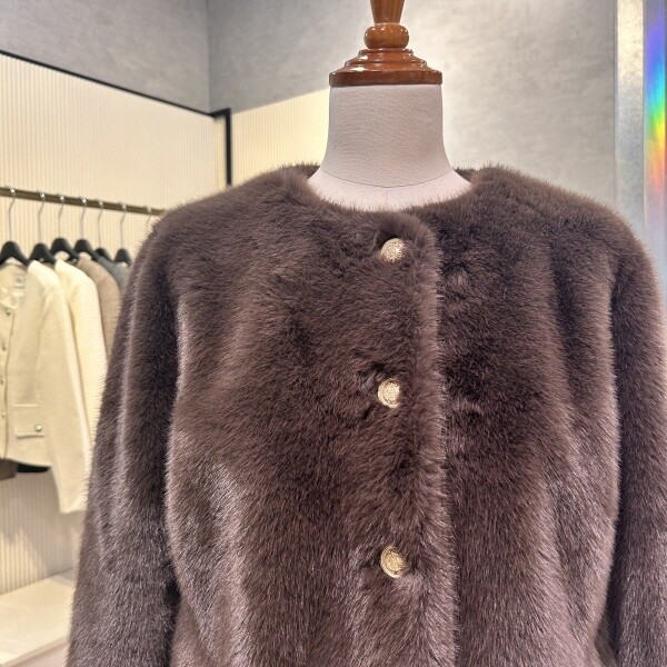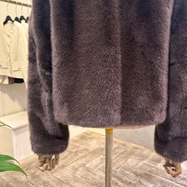 2025년 f/w 신상?라운드 크롭 페이크 퍼 자켓 입니다.
