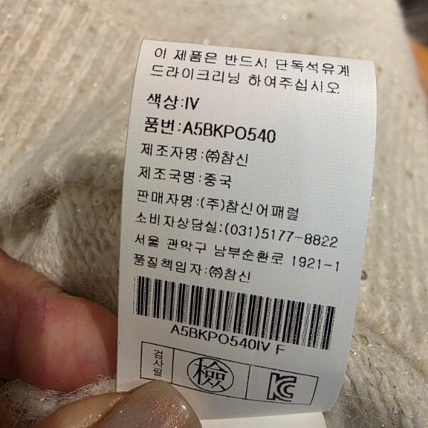 제조자 : (주)참신어패럴