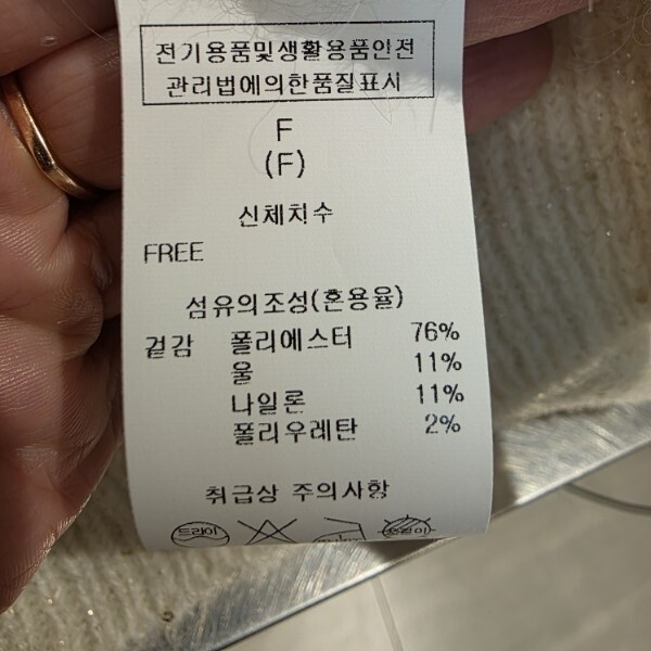 제품소재 : 폴리에스터 76% 울 11% 나일론 11% 폴리우레탄 2%