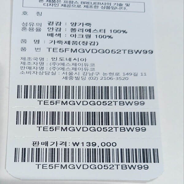 손목에 브랜드 로고를 활용한 브로이어 장갑입니다.