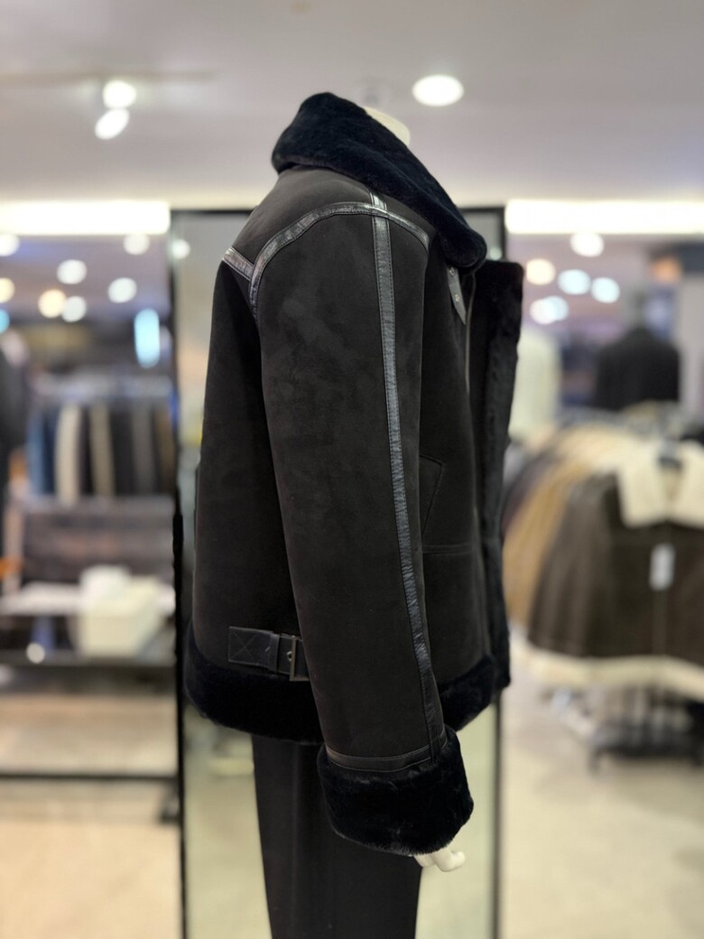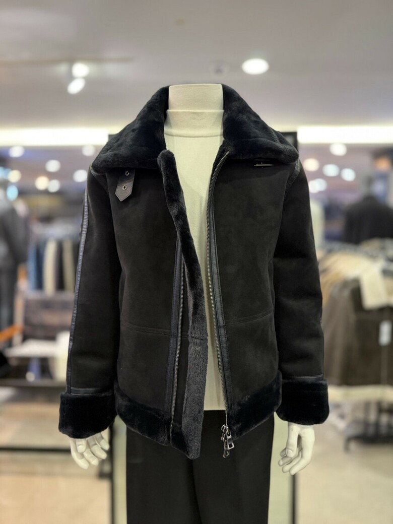 블랙 스웨이드 세미오버핏 무스탕