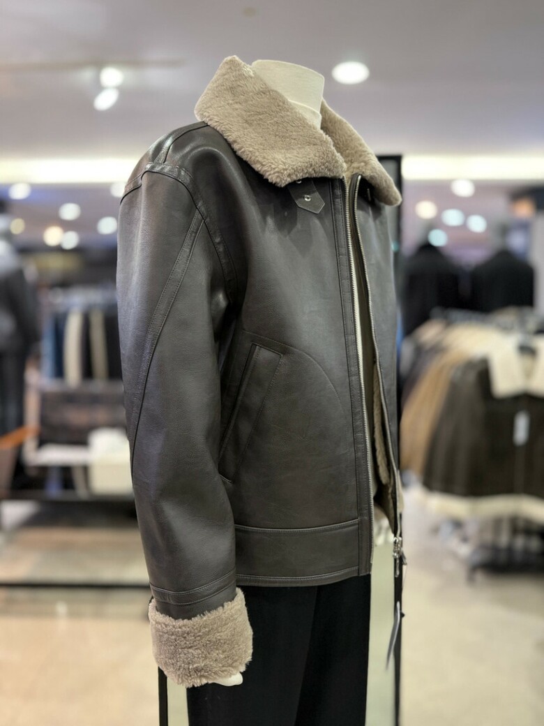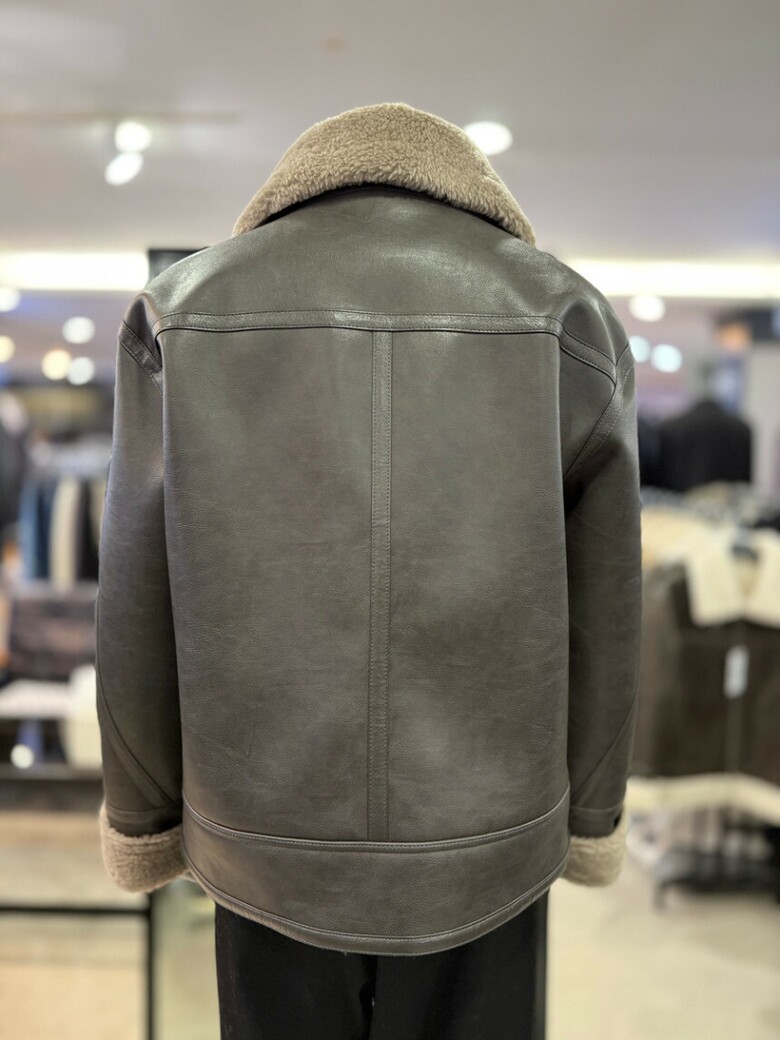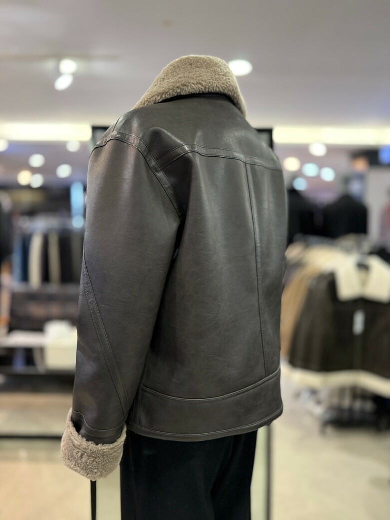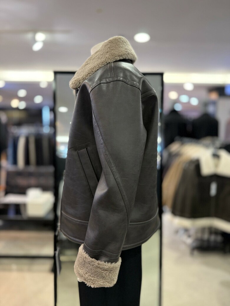 브라운 램 텍스쳐 오버핏 무스탕