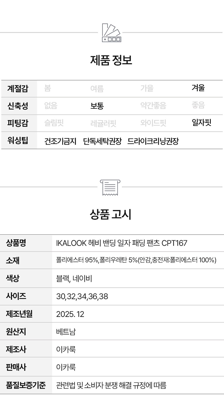 IKALOOK 헤비 밴딩 일자 패딩 팬츠 CPT167