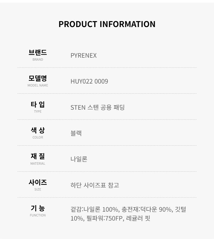 피레넥스 HUY022 0009 STEN 스텐 공용 패딩