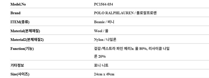 폴로랄프로렌 PC1564-034 포니 니트 비니