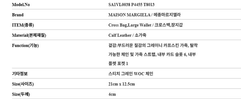 마르지엘라 가방 SA1VL0038 P4455 T8013 스티치 그레인 WOC 체인 여성크로스백 당일발송