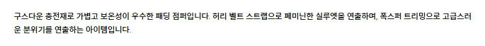 [지고트] 폭스카라 벨트 구스다운 점퍼 (JRCA2PD553)