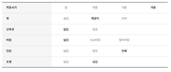 | 6. 세탁방법 및 취급시 주의사항 | 상품상세참조 |