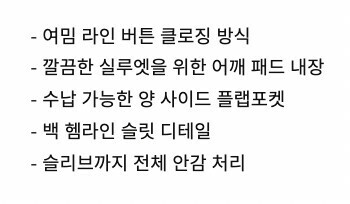 • 아울렛 상품의 특성 상 “택이 훼손”된 경우가 있으나 이는 불량이 아니며 무료 반품 대상 상품이 아닙니다.