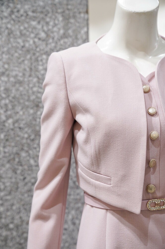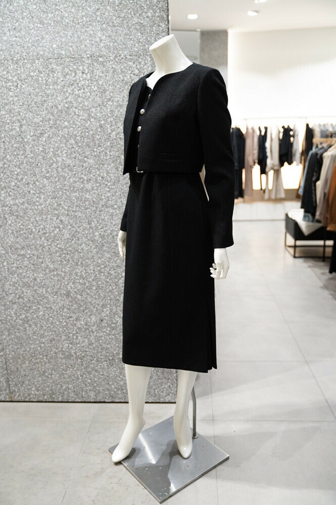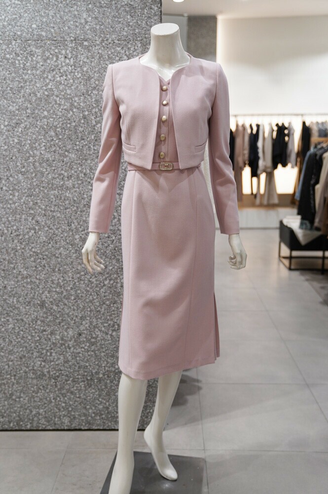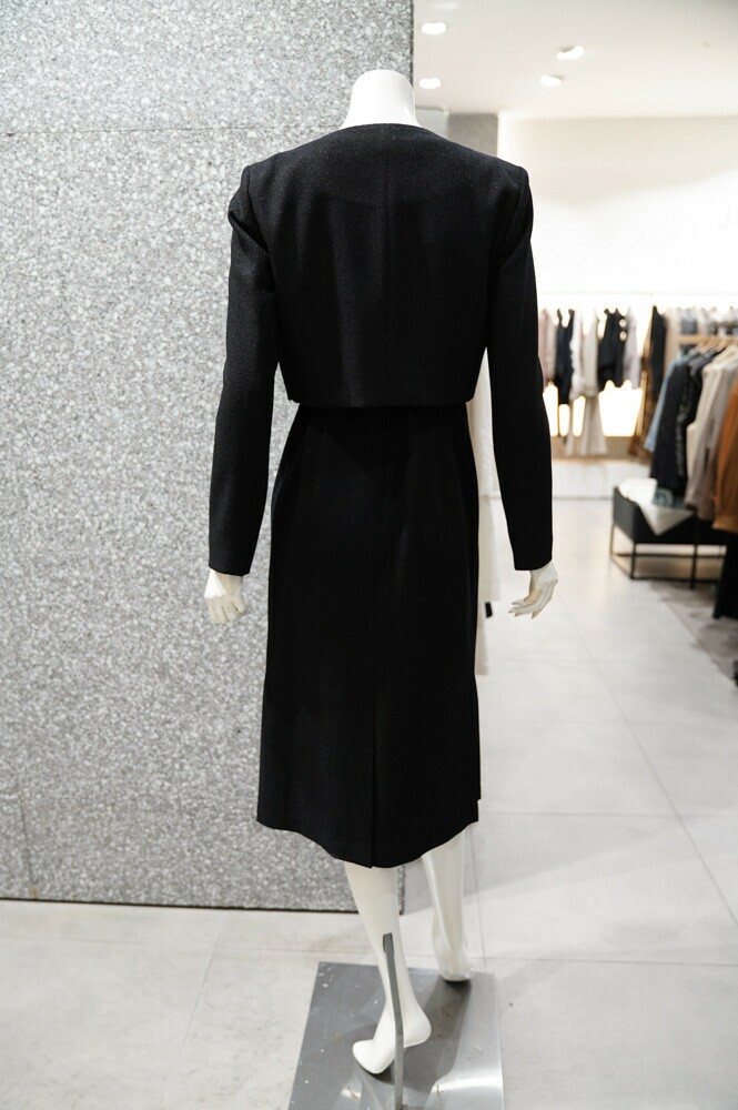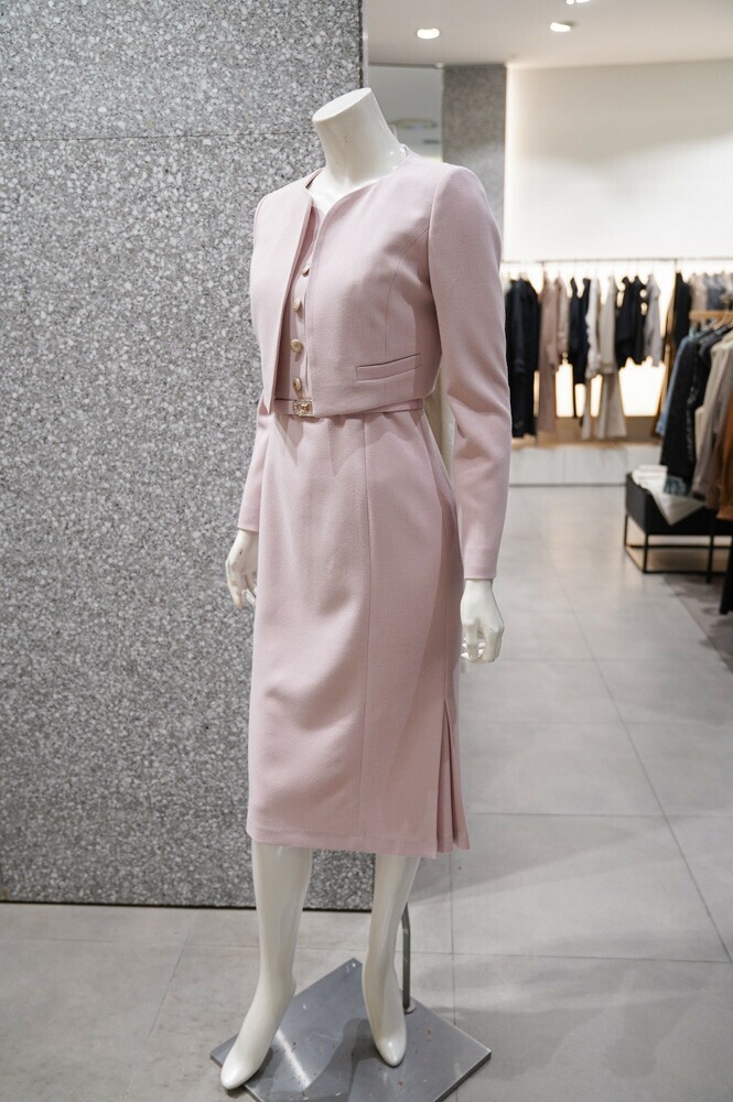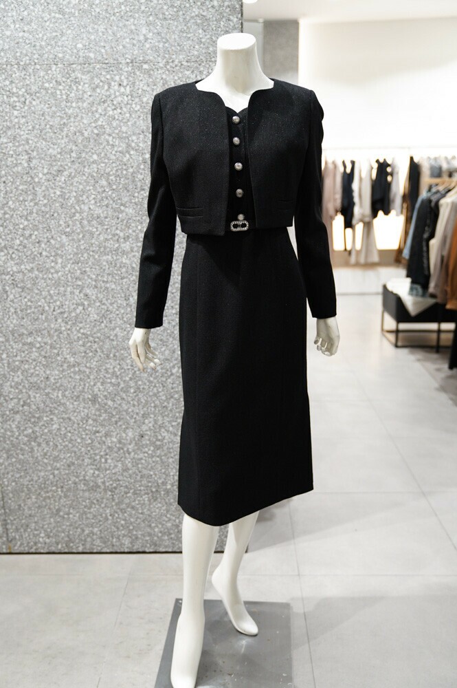 깔끔하고 세련된 디자인의 원피스+재킷 세트 입니다