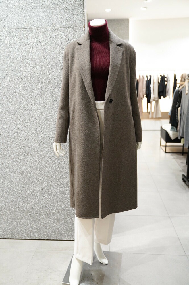 깔끔하고 세련된 디자인의 캐시미어 롱 코트 입니다