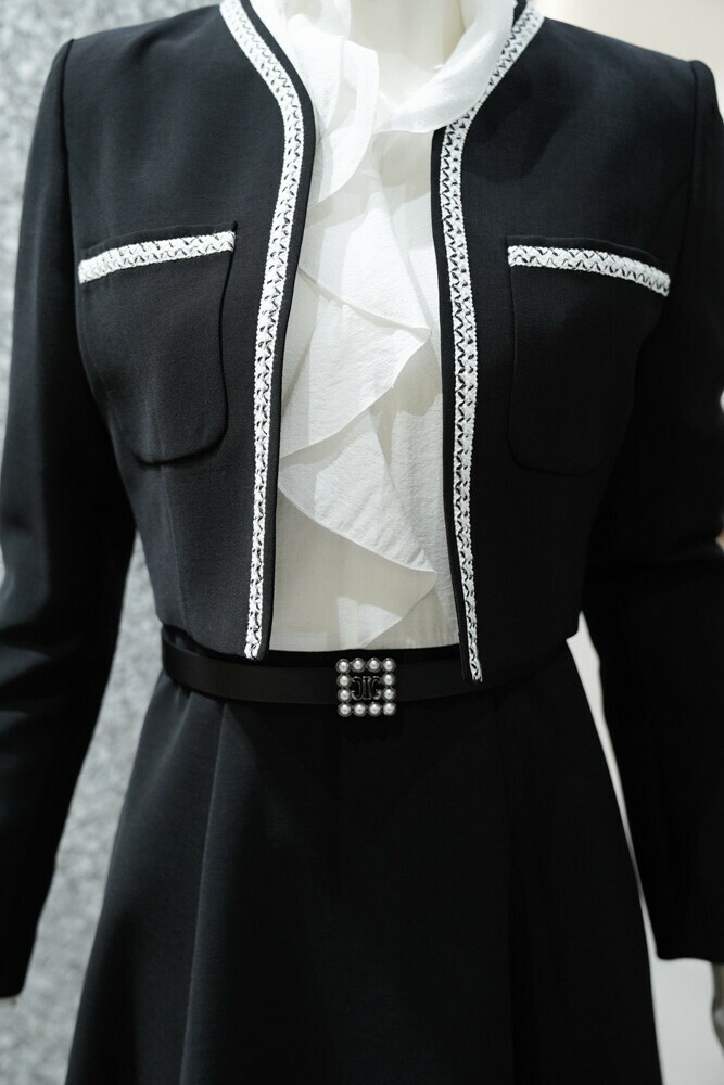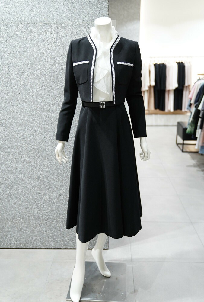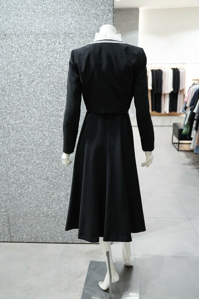 [지고트] 플로라 벨티드 핀턱 원피스 + 크롭 자켓 세트 (JR9A0OP802)