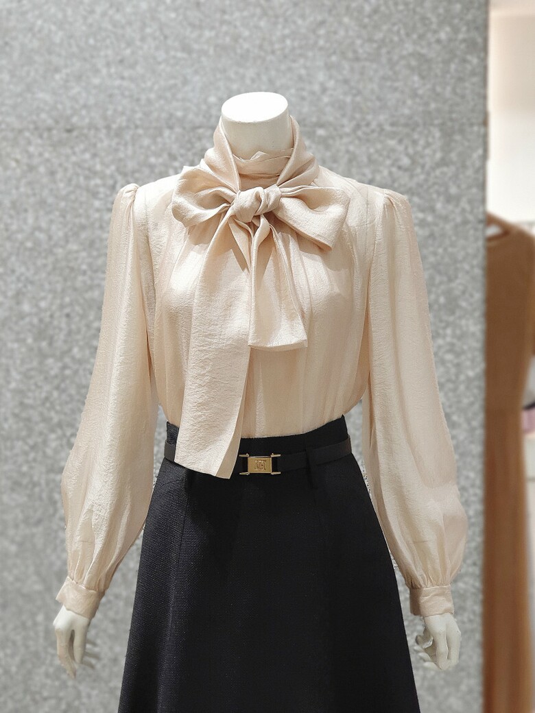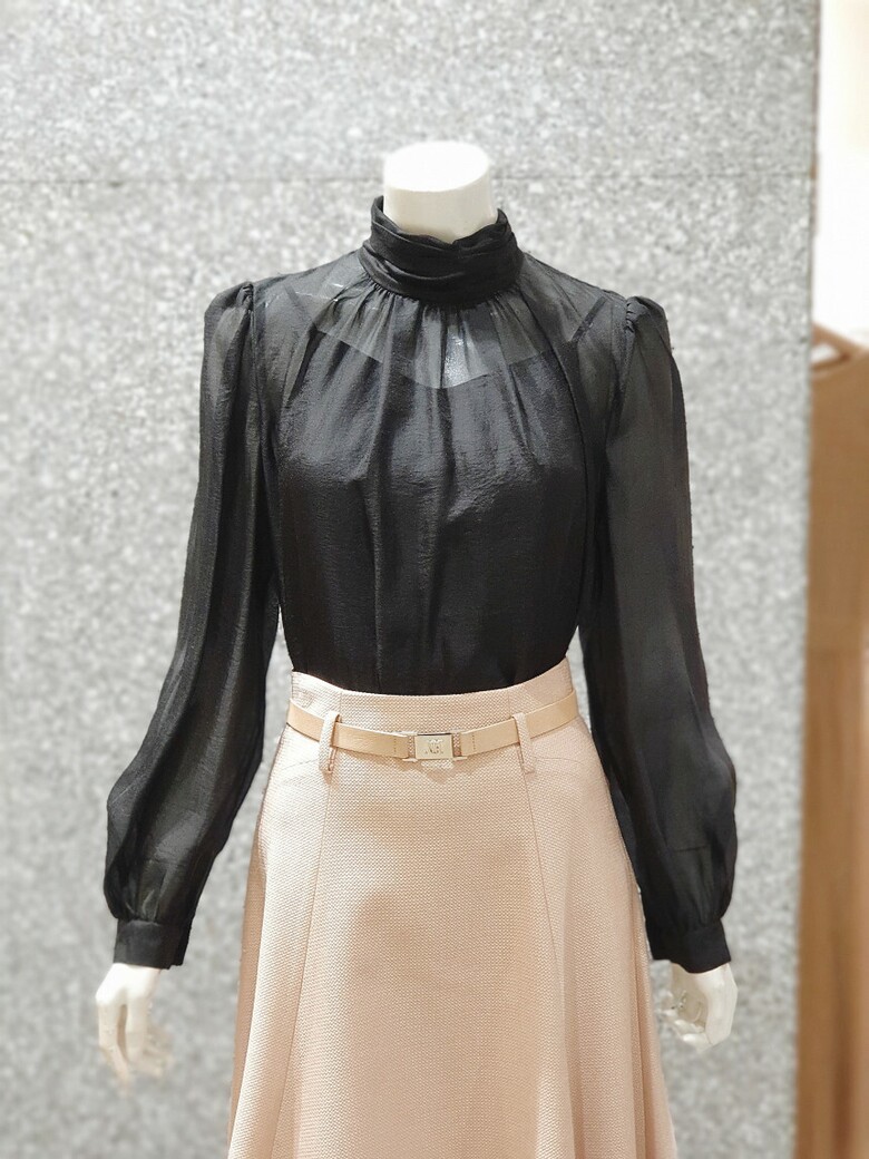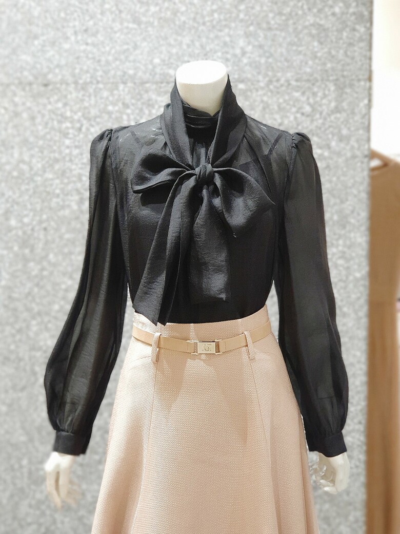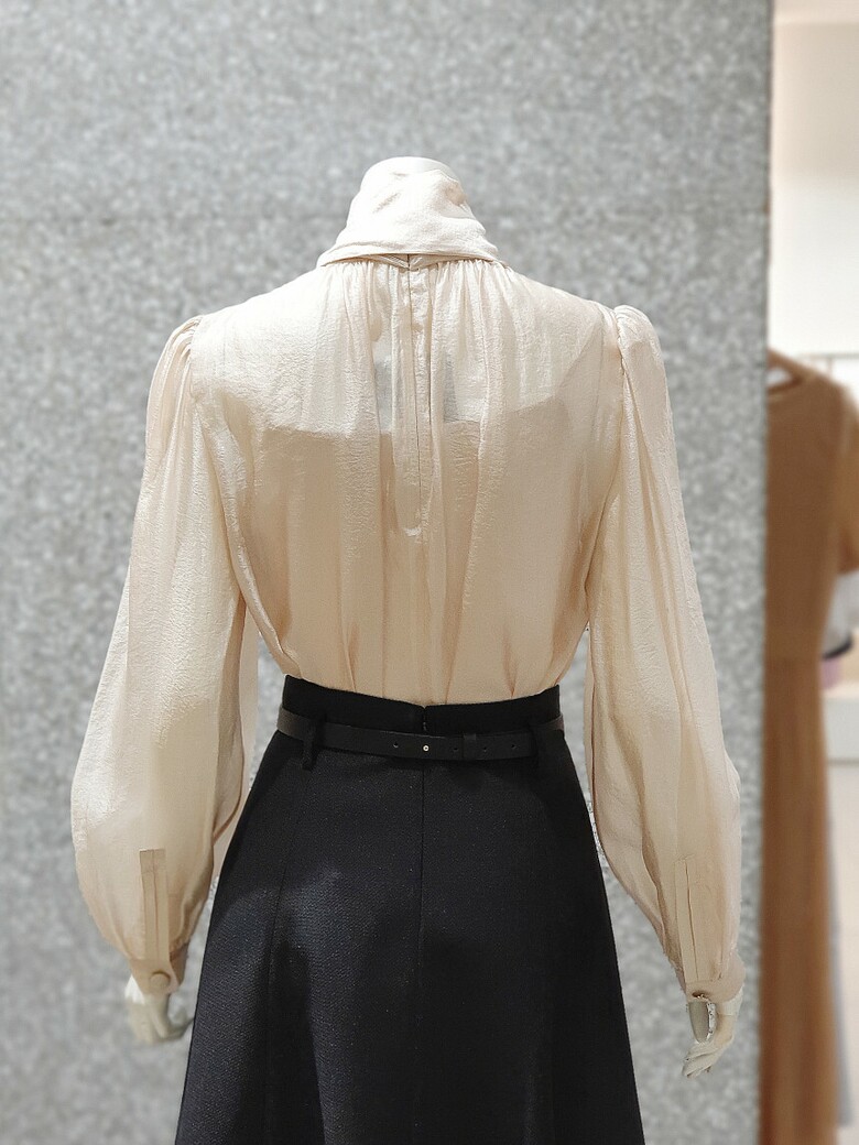 시스루 퍼프 타이 셔링넥 블라우스+이너 세트 JR8-A0-BL663