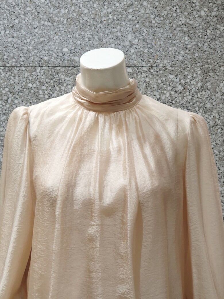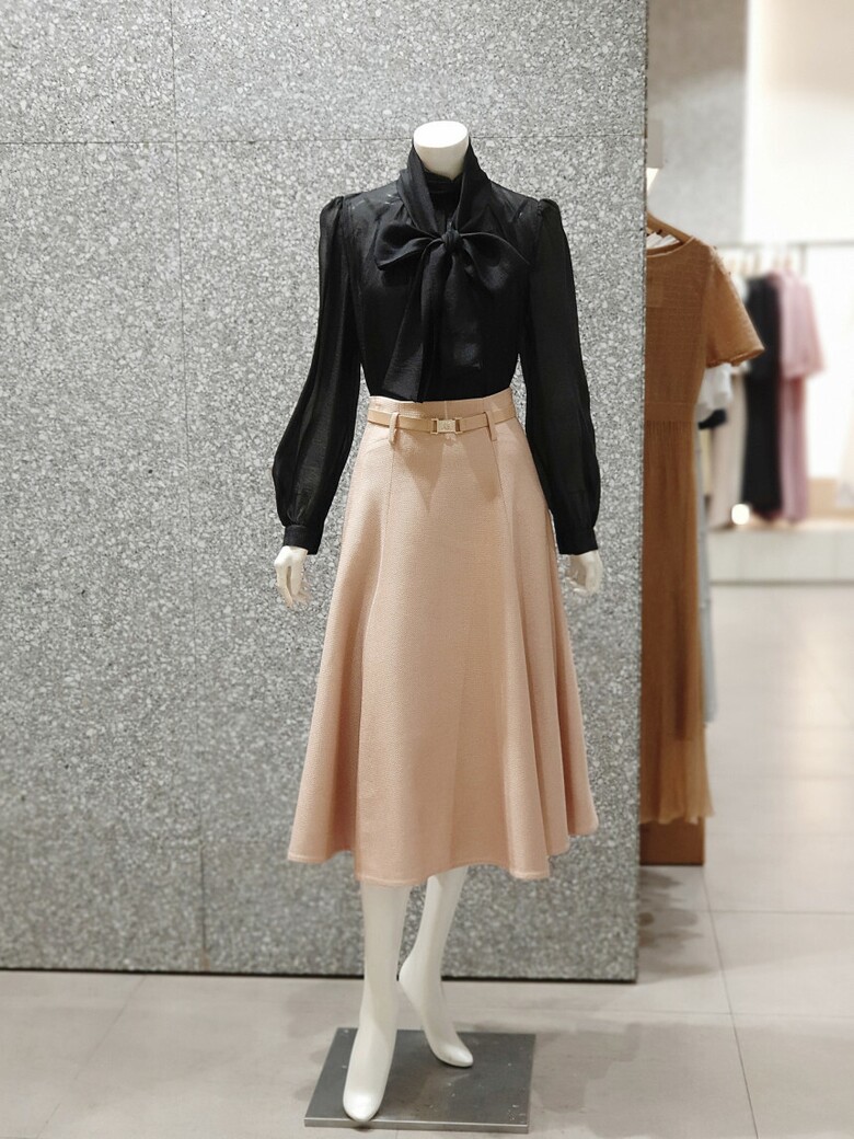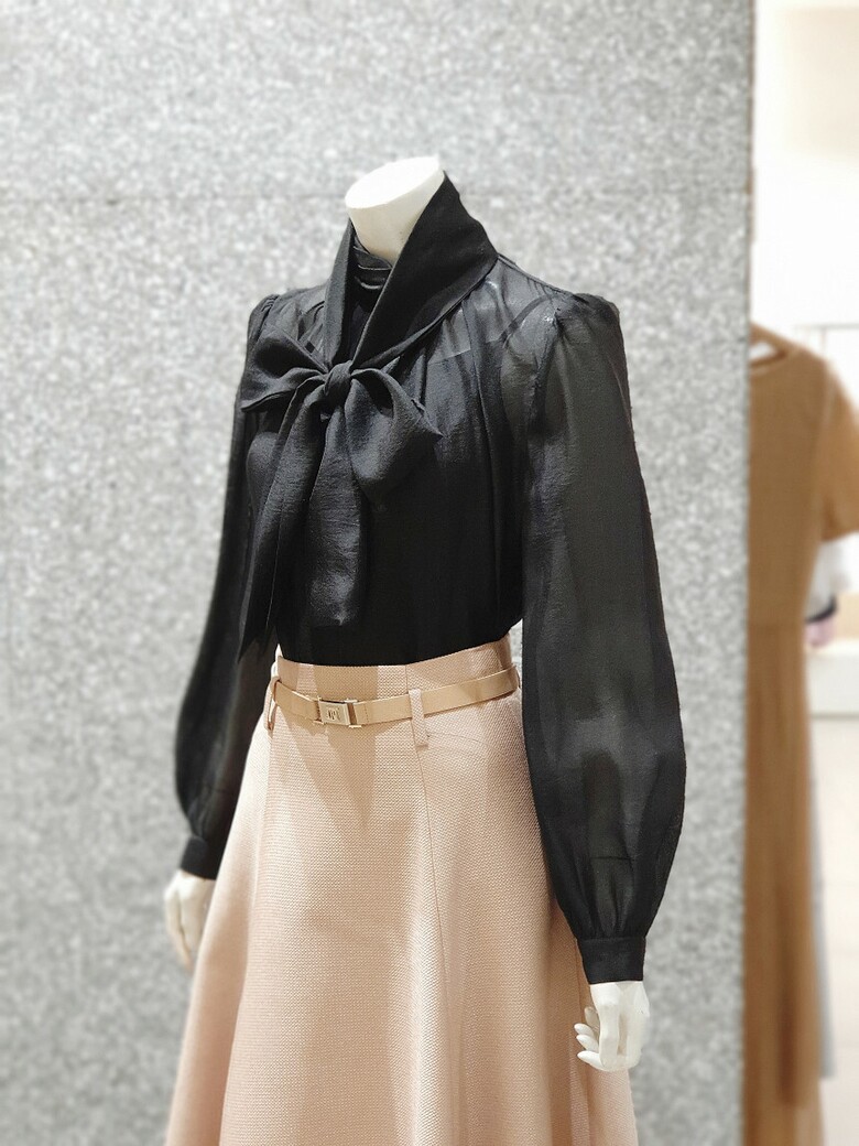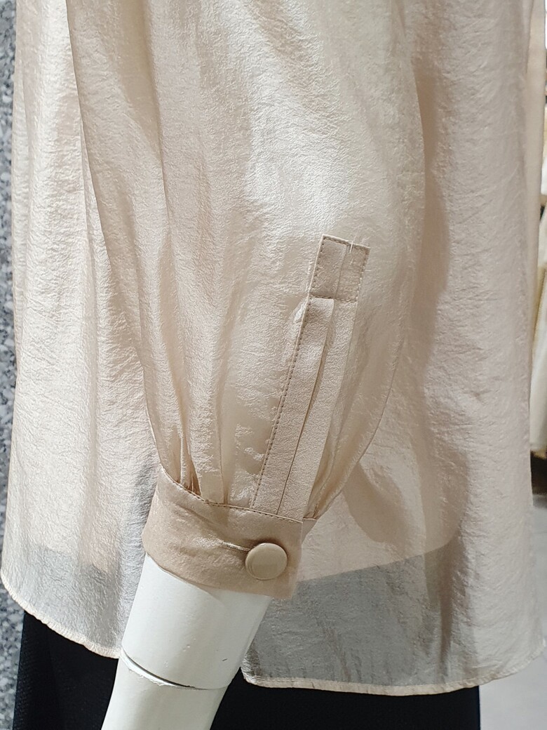 시스루 퍼프 타이 셔링넥 블라우스+이너 세트 JR8-A0-BL663