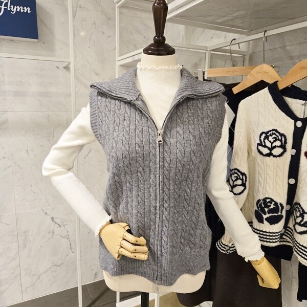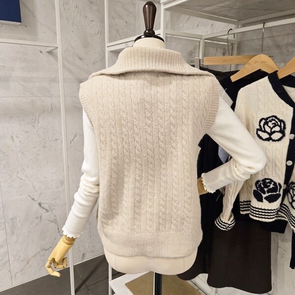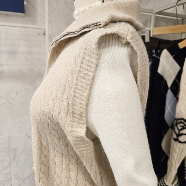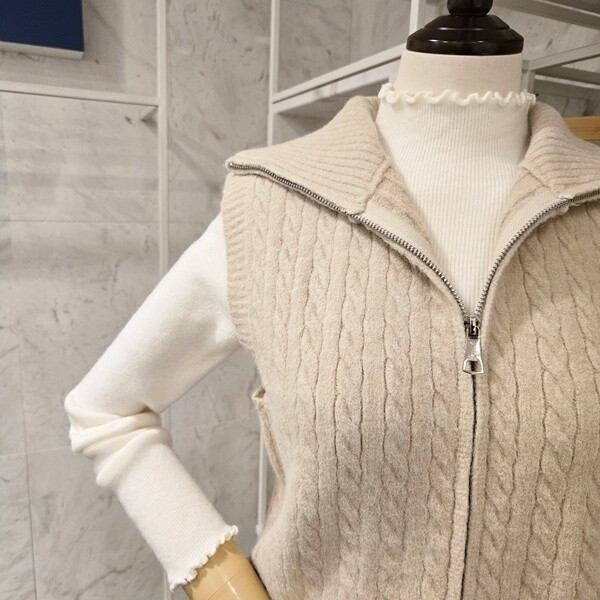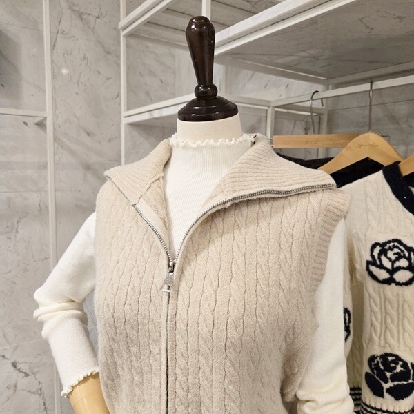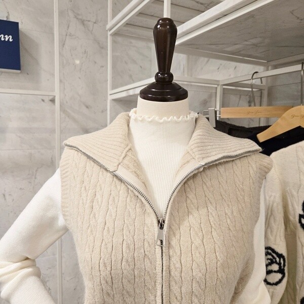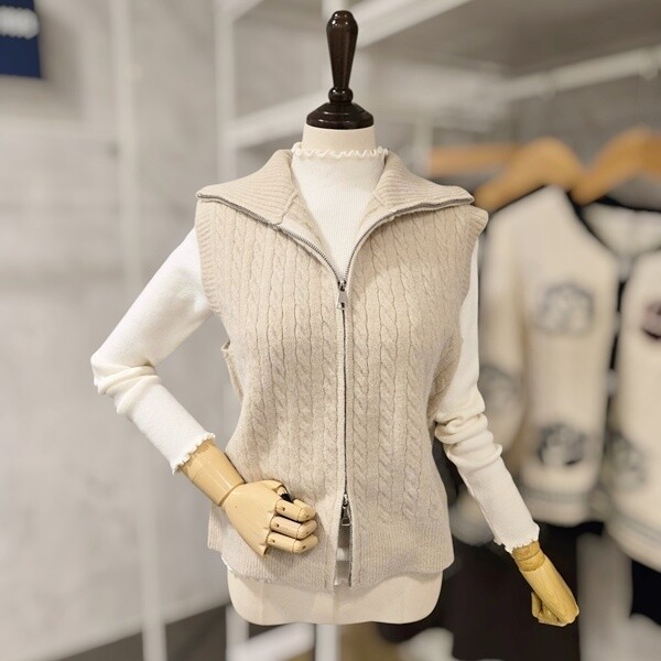 F5DVT508A_집업 투웨이 꽈배기 니트조끼