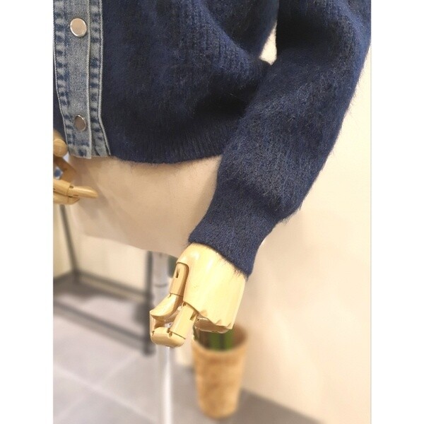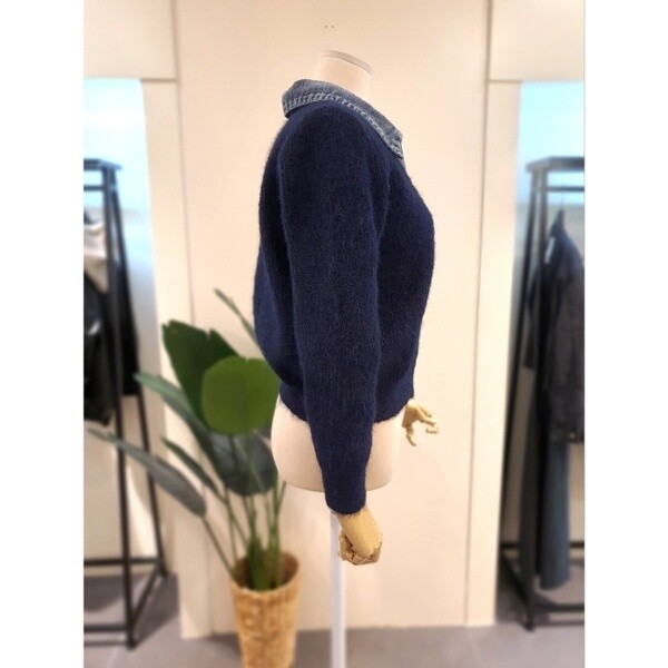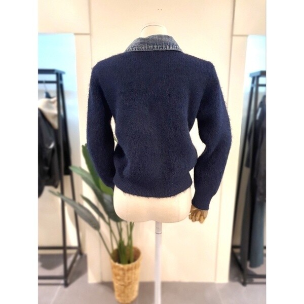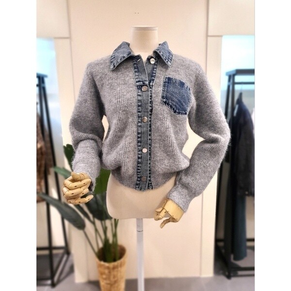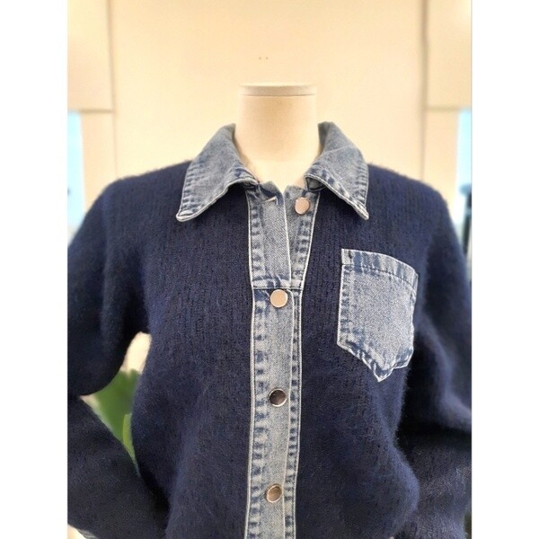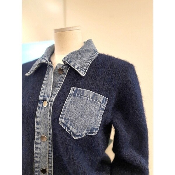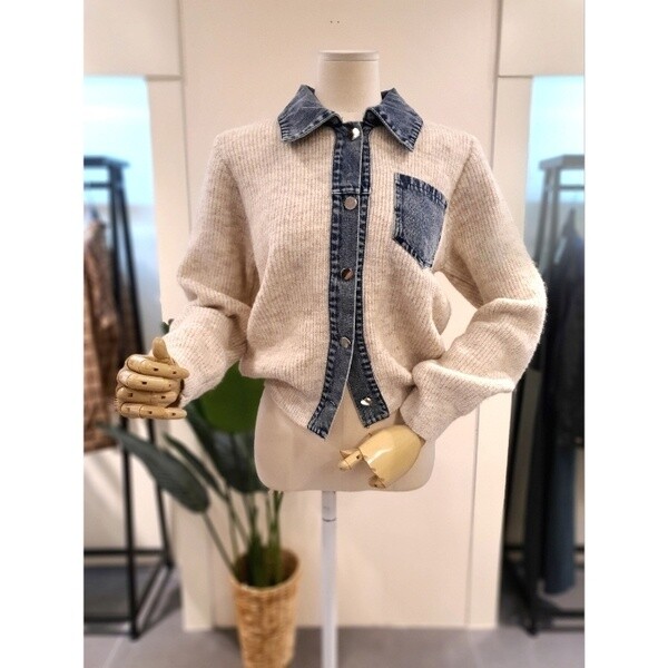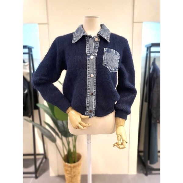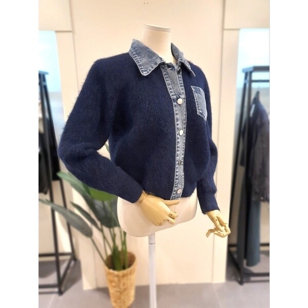 데님으로 배색 포인트를 준 니트 가디건입니다.