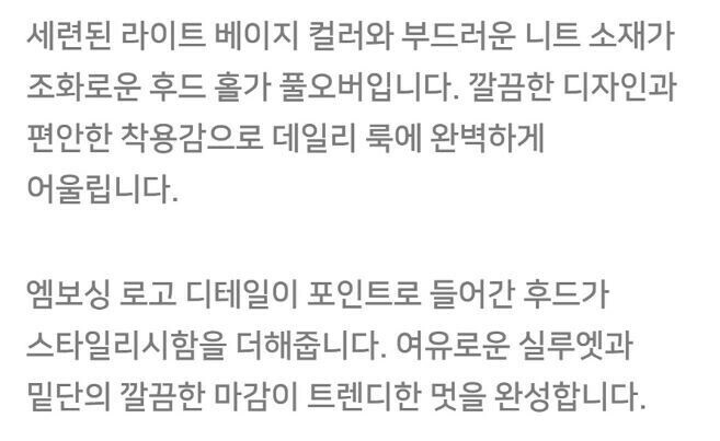 • 처음 배송된 상품상태와 다를 경우(세탁/착용 후 외출하신 경우) 반품이 불가합니다.