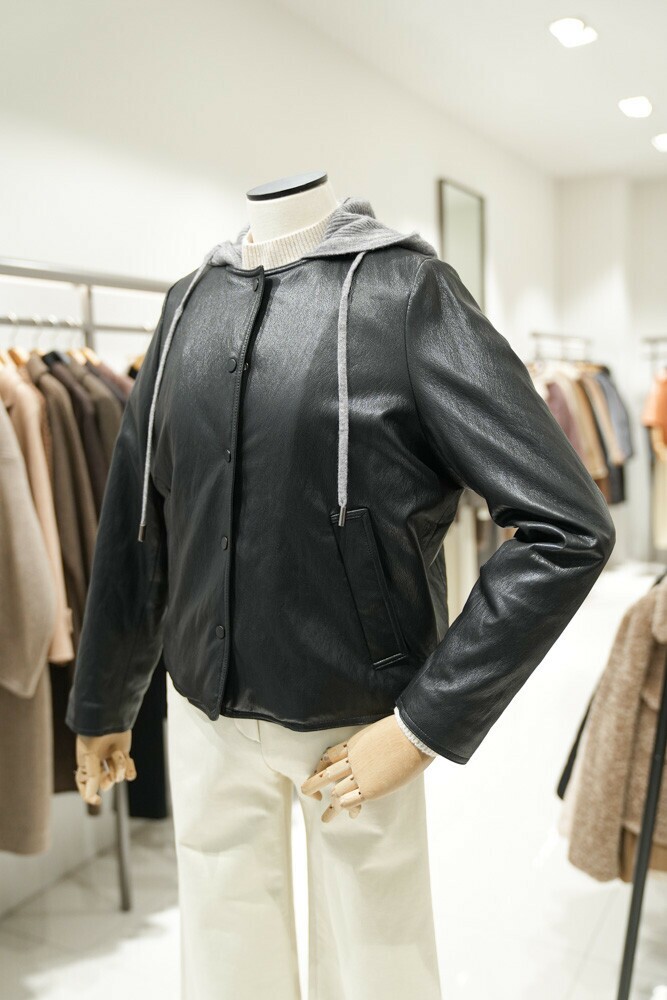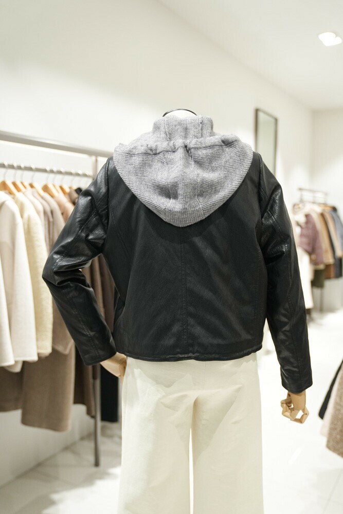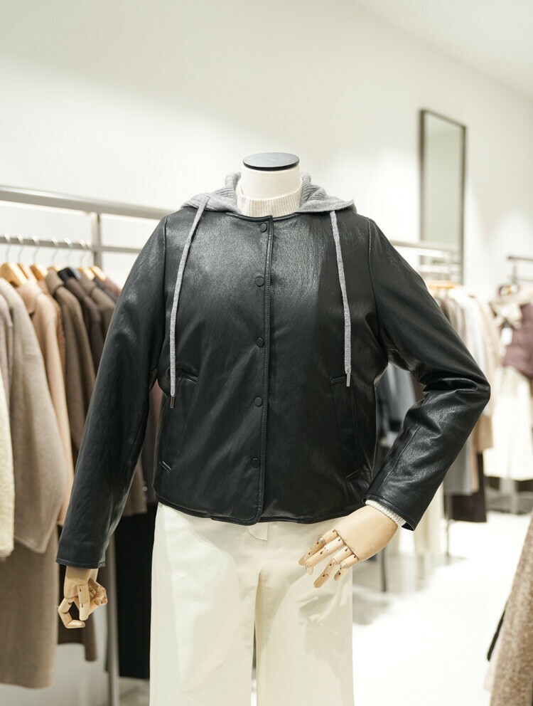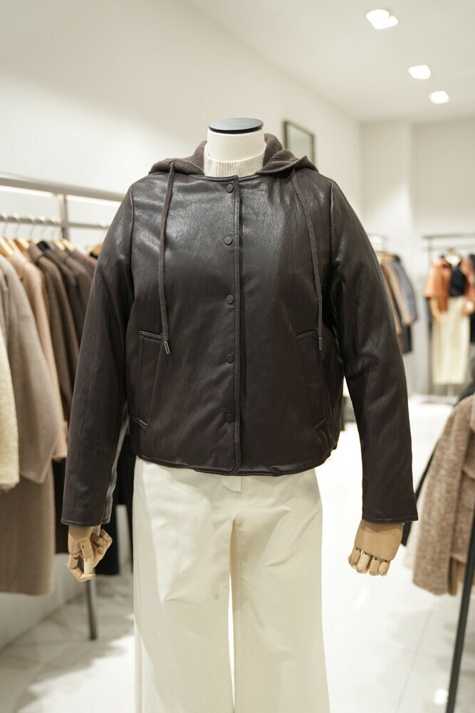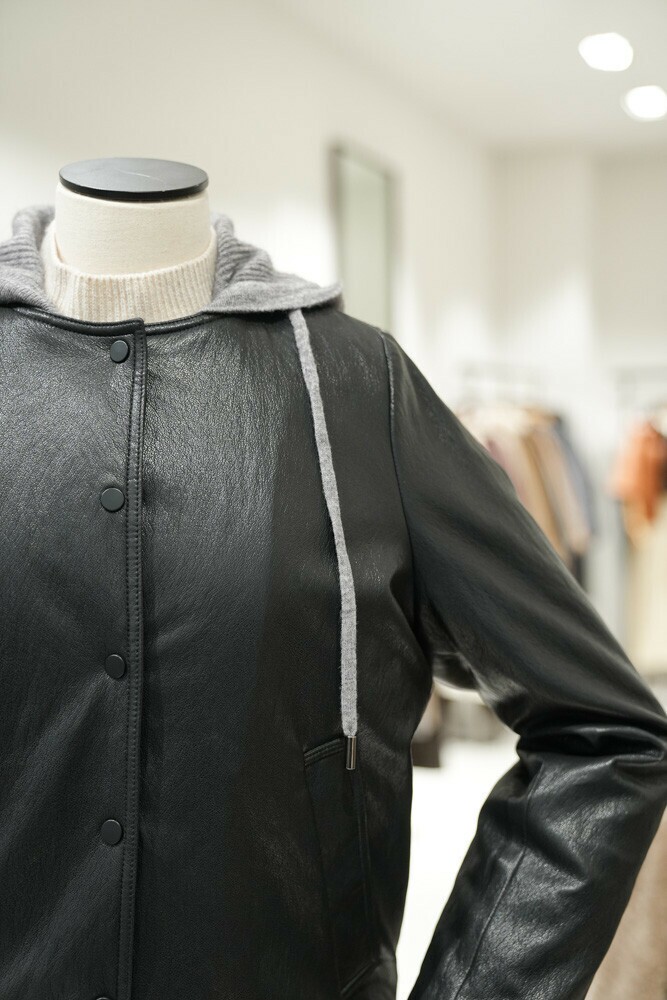 [BCBG] 페이크 레더 후드 가죽 재킷 (A5F8Y961)