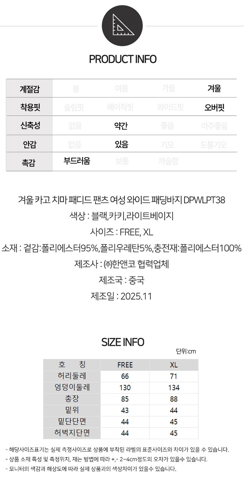 [김영주골프] 겨울 카고 치마 패디드 팬츠 여성 와이드 패딩바지 DPWLPT38