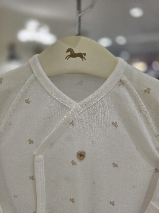 부드러운 면100 %소재의 신생아 배내우주복입니다