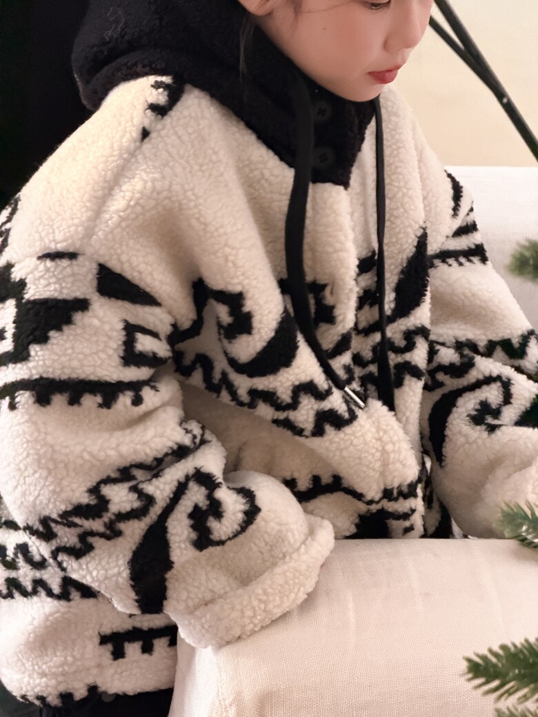 [예약발송] 배색 후드 뽀글이 점퍼 R16025