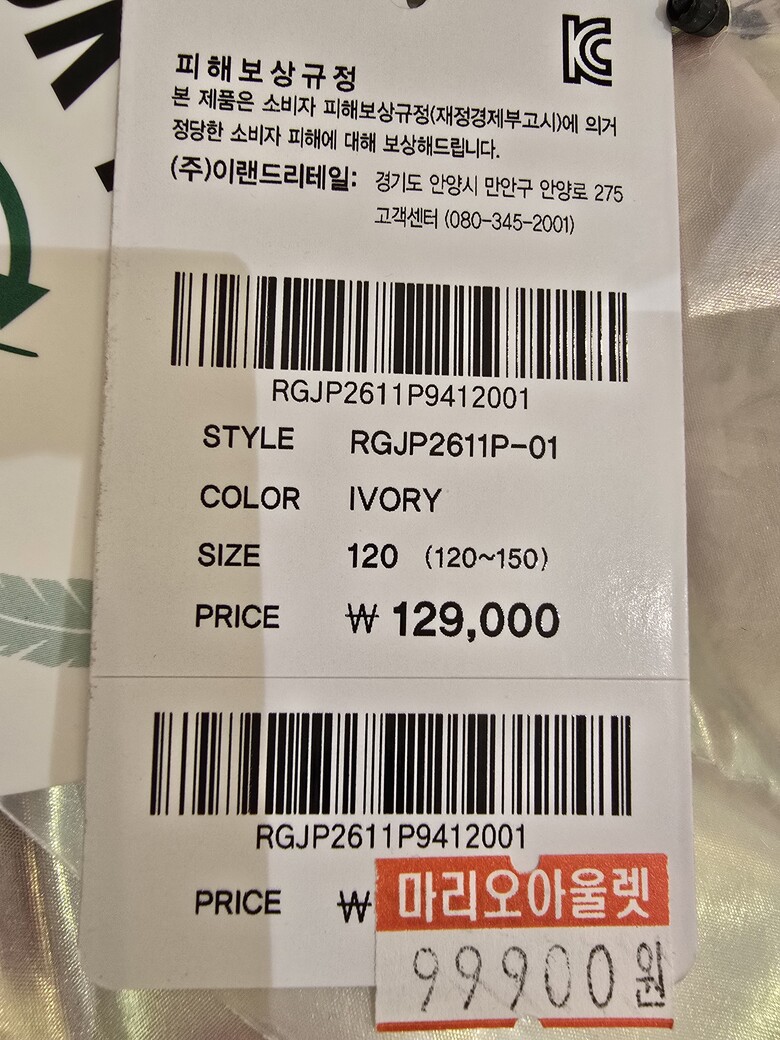 • 아울렛 상품의 특성 상 “택이 훼손”된 경우가 있으나 이는 불량이 아니며 무료 반품 대상 상품이 아닙니다.