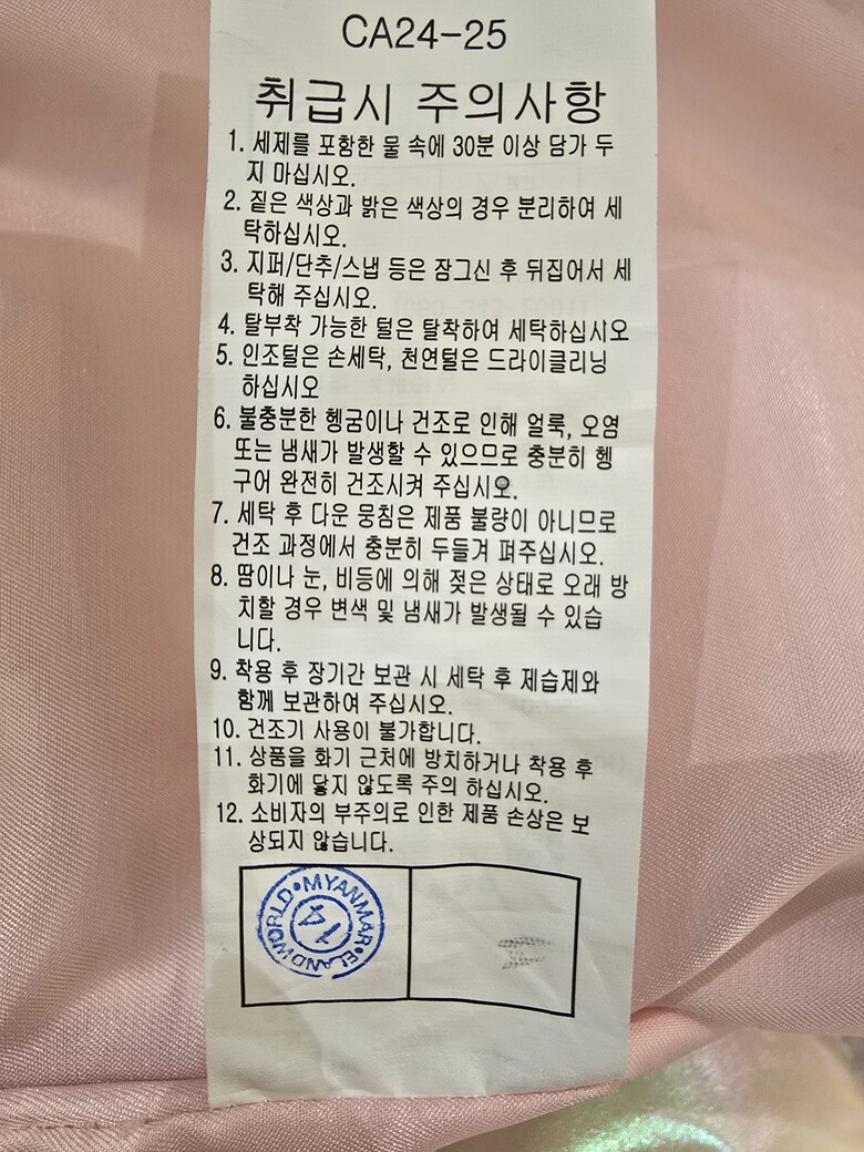 • 처음 배송된 상품상태와 다를 경우(세탁/착용 후 외출하신 경우) 반품이 불가합니다.