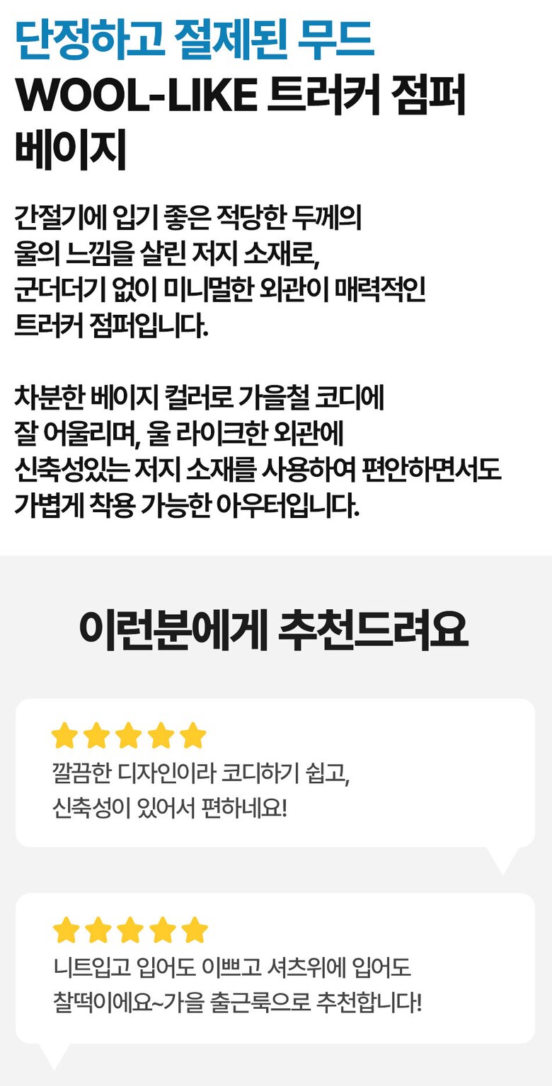 WOOL-LIKE 트러커 점퍼_베이지 (세미오버핏)