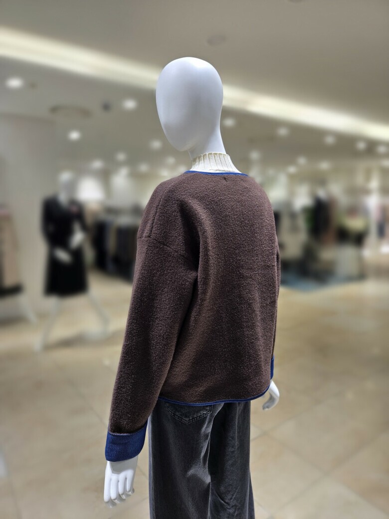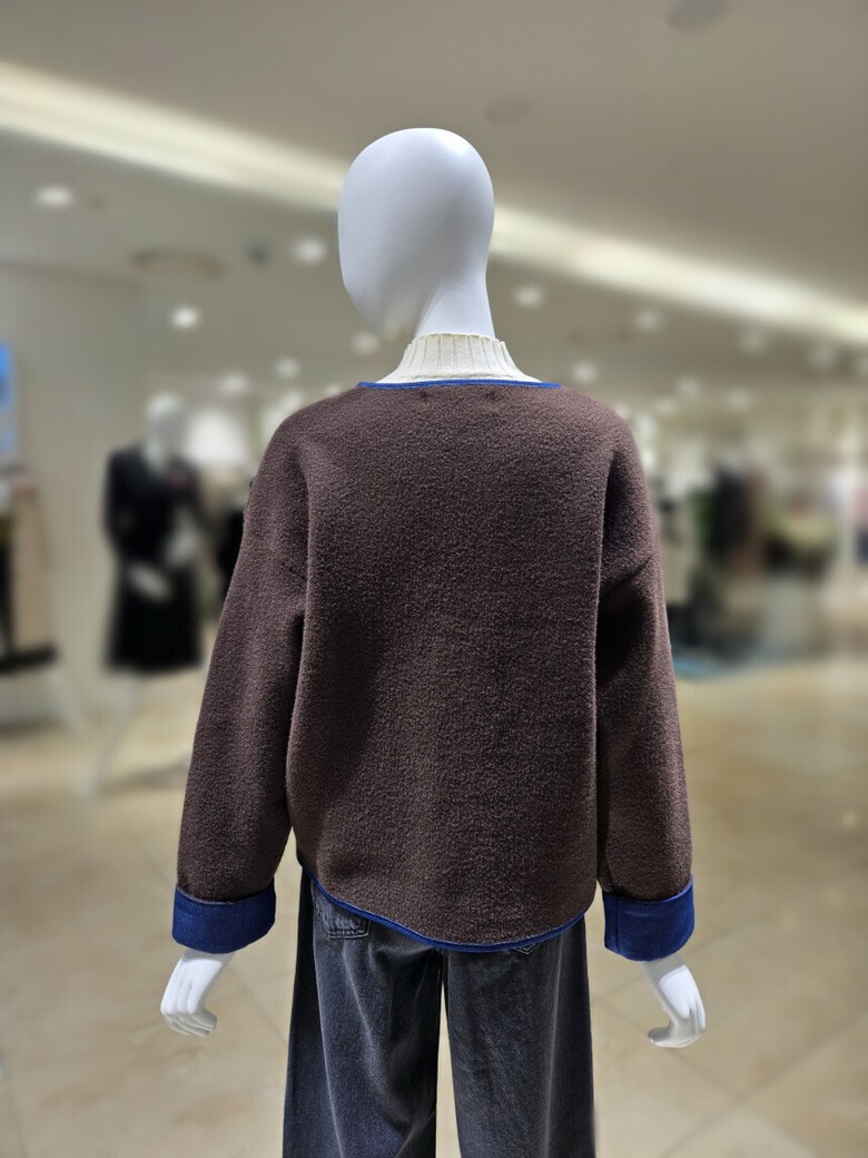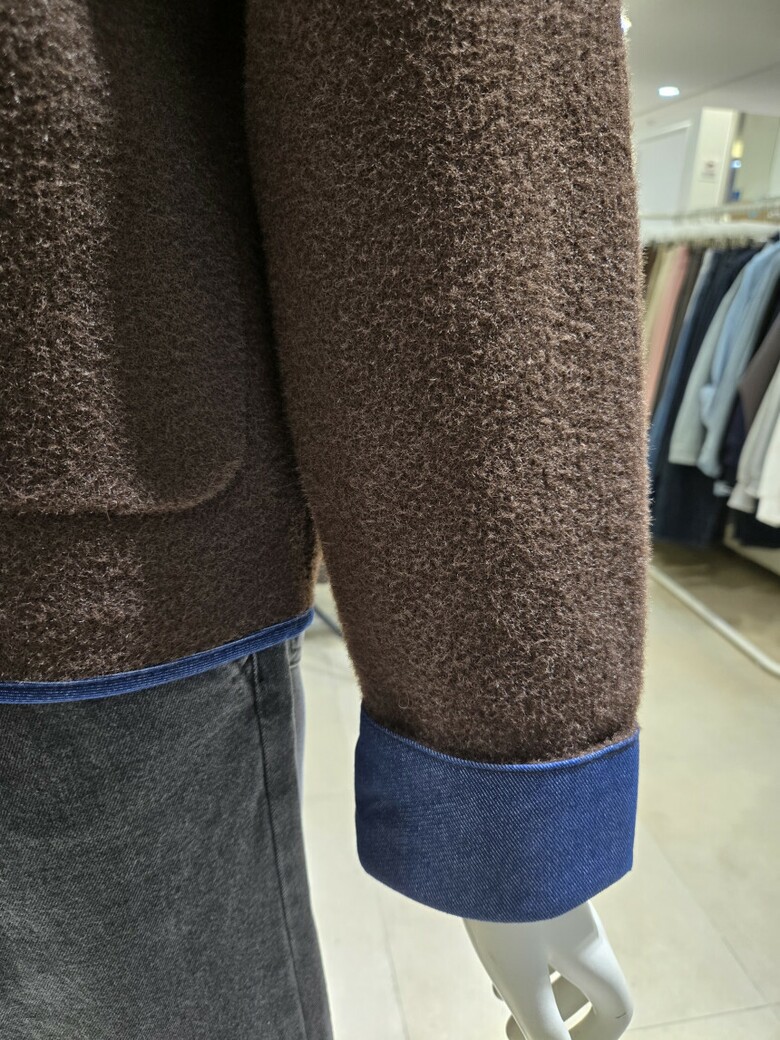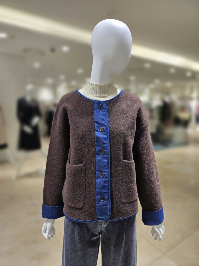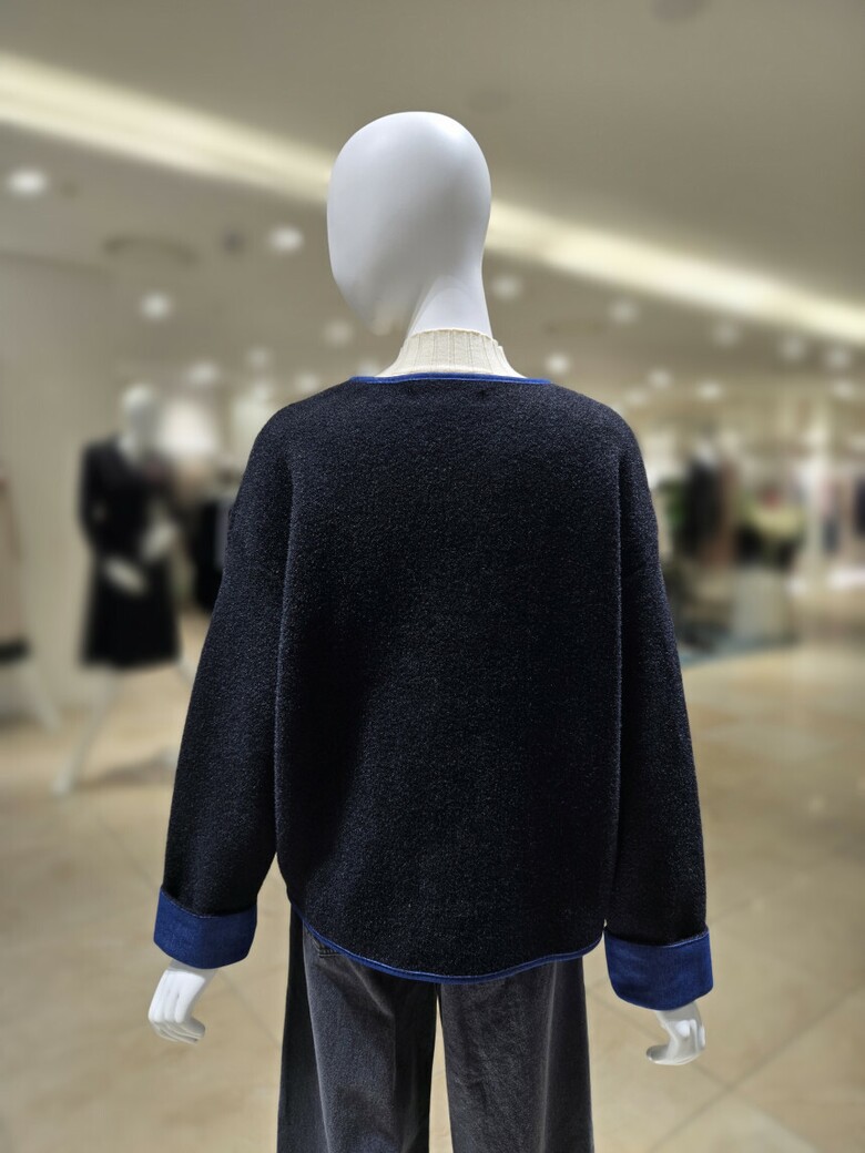 라운드넥 데님 배색 니트 자켓 YW5W-J408