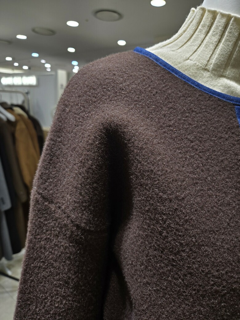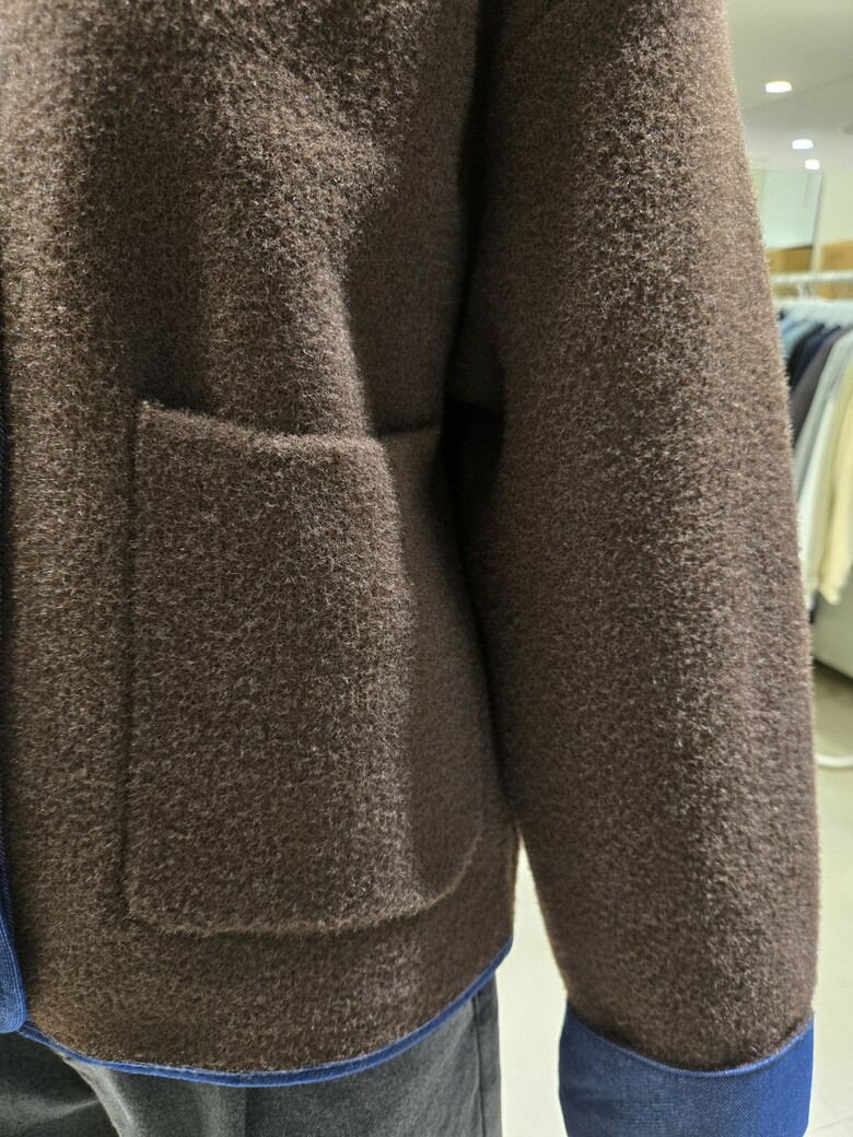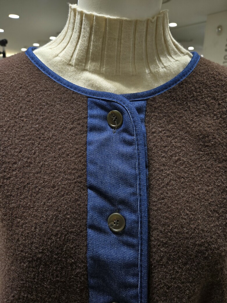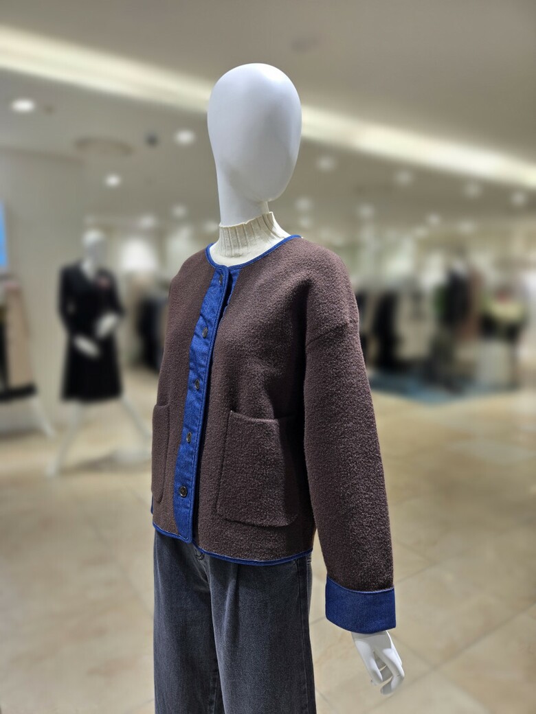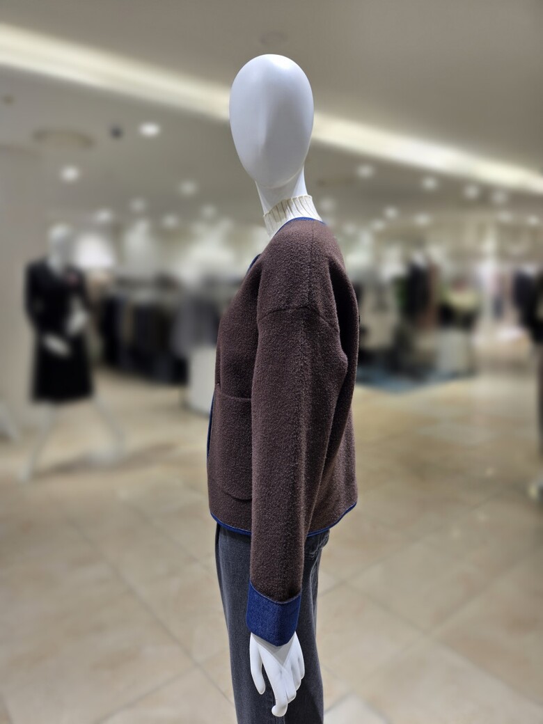 라운드넥 데님 배색 니트 자켓 YW5W-J408