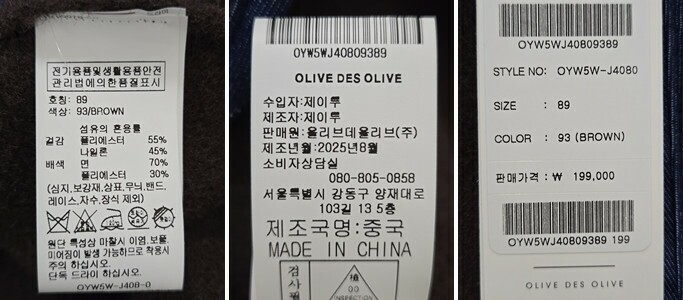 | 3. 치수 | 89, 89 수입자:제이투 SIZE:89 |