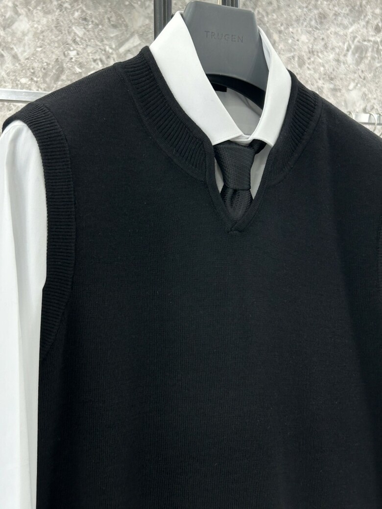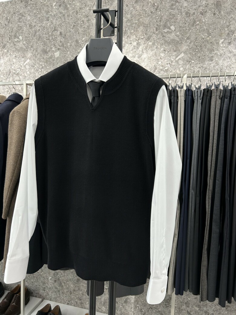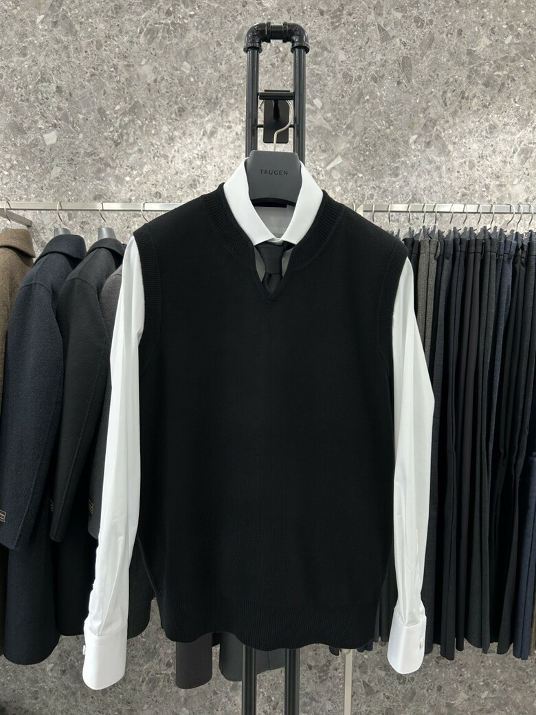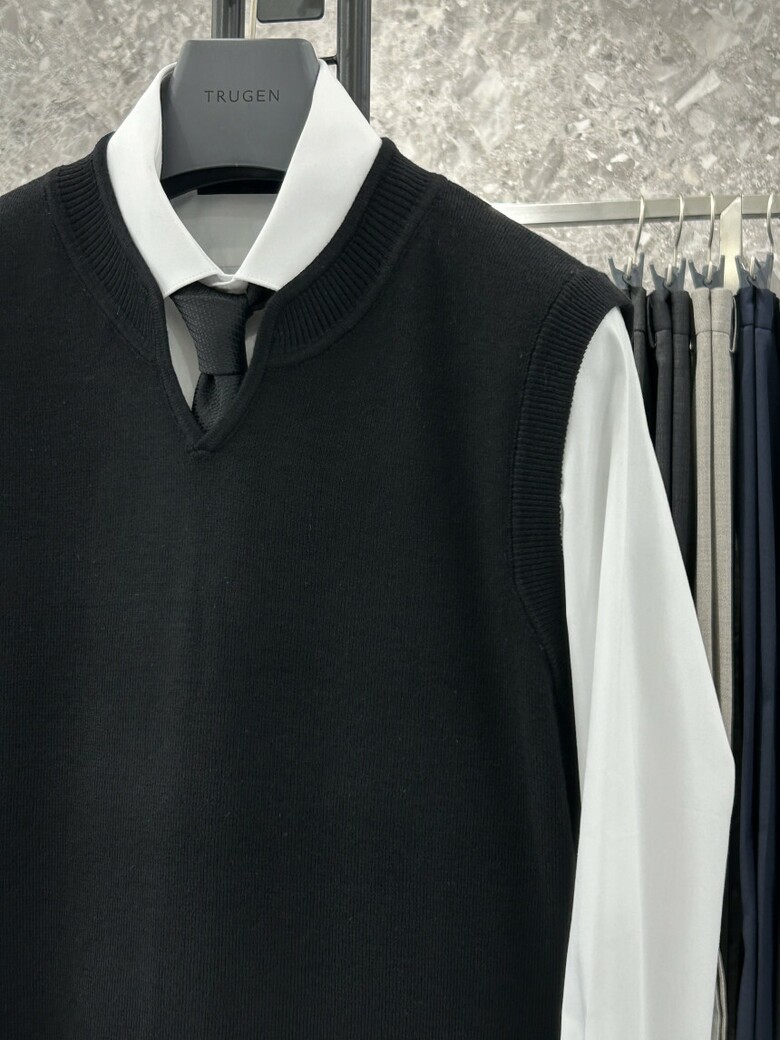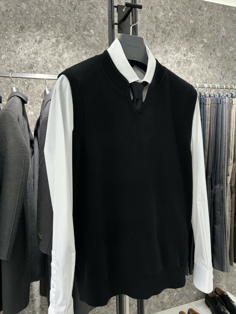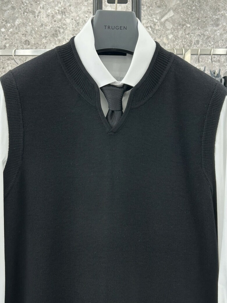 (트루젠) 블랙 울혼방 브이넥 베스트 비지니스 캐주얼 조끼 FI8818001054