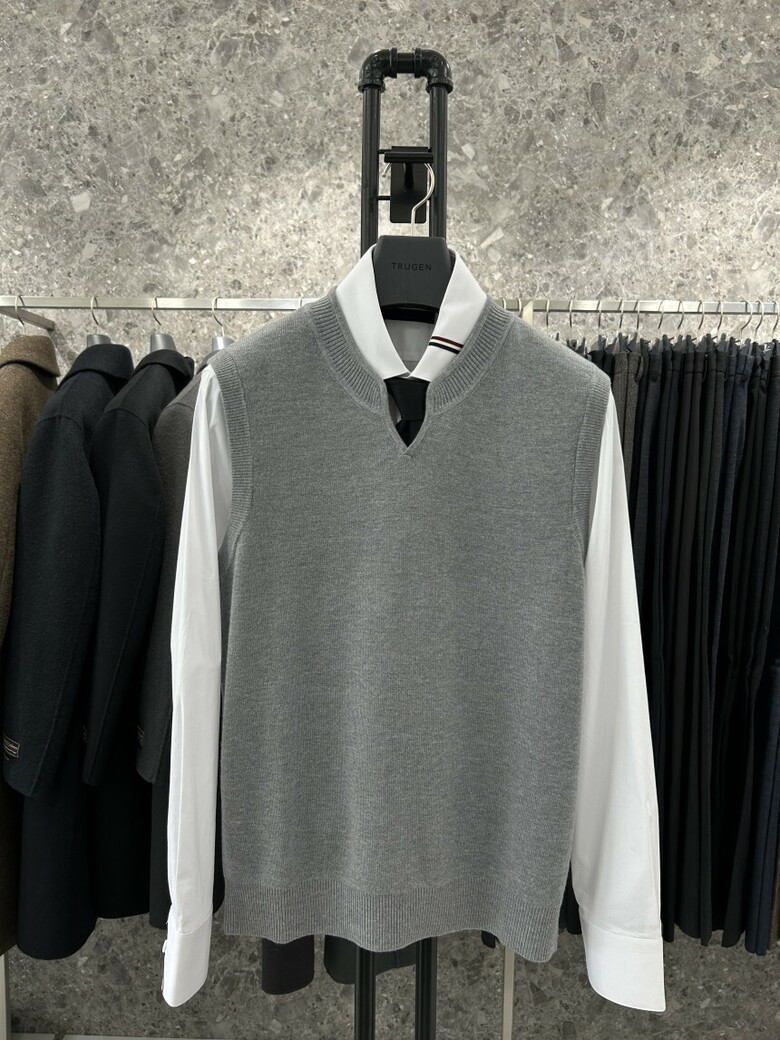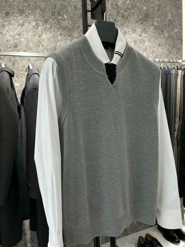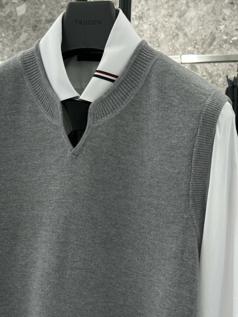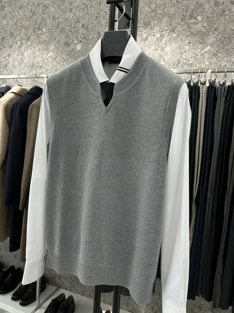 (트루젠) 그레이 울혼방 브이넥 베스트 비지니스 캐주얼 조끼 FI8818001034