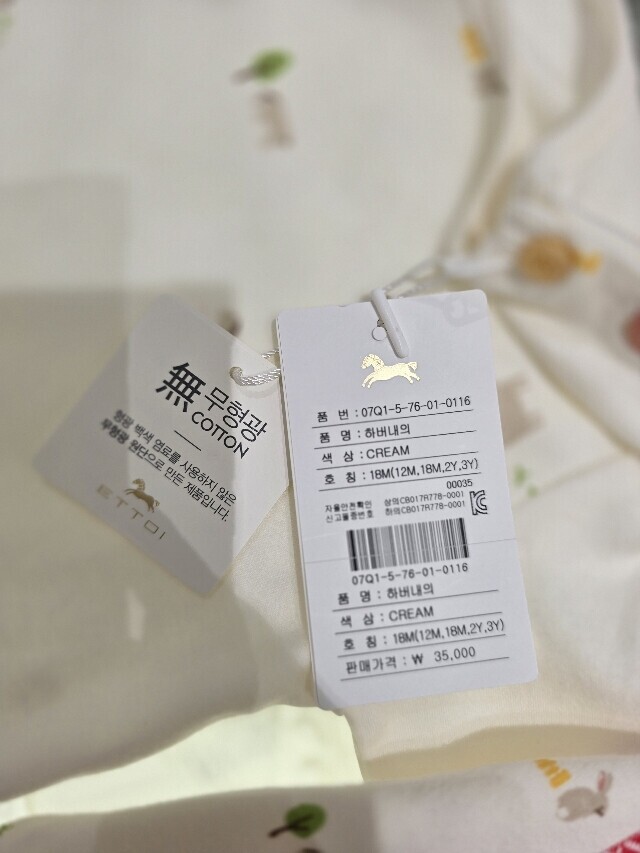 부드러운 면 소재의 내복입니다