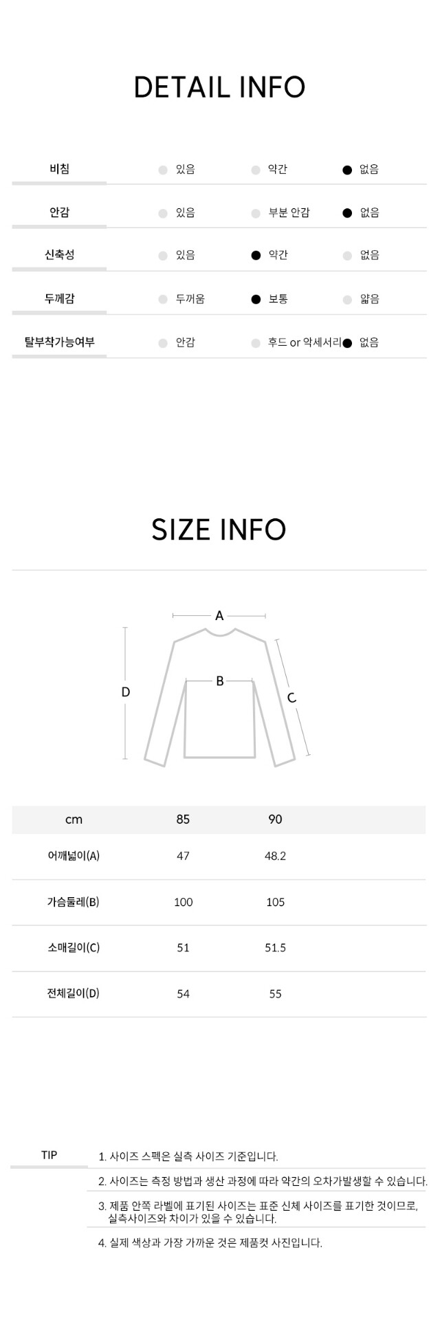 | 6. 세탁방법 및 취급시 주의사항 | 상품상세참조 |