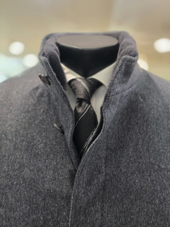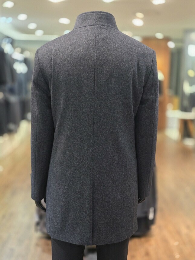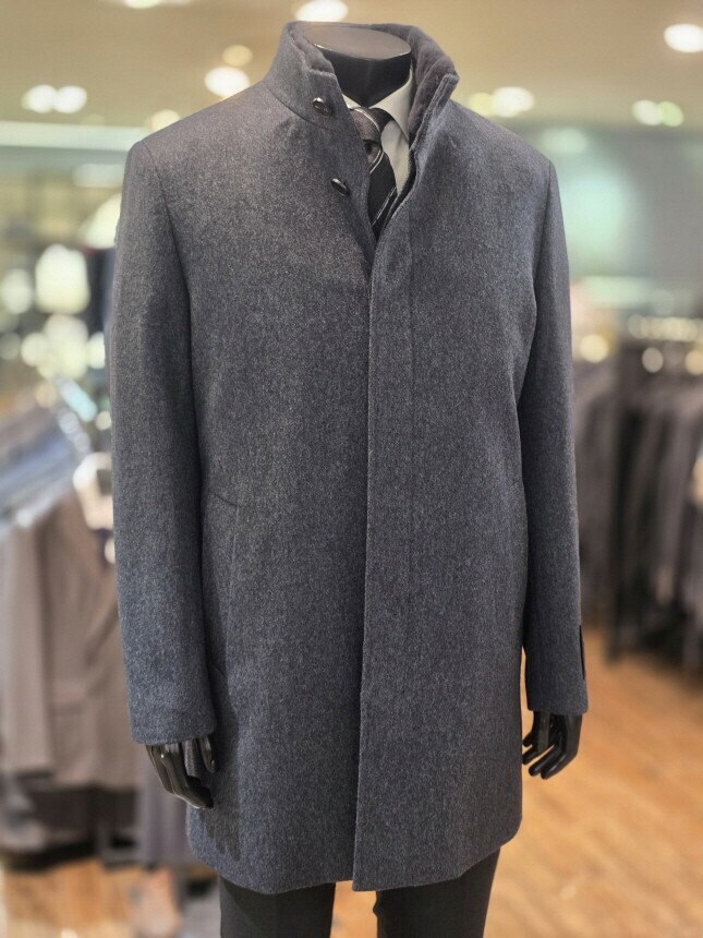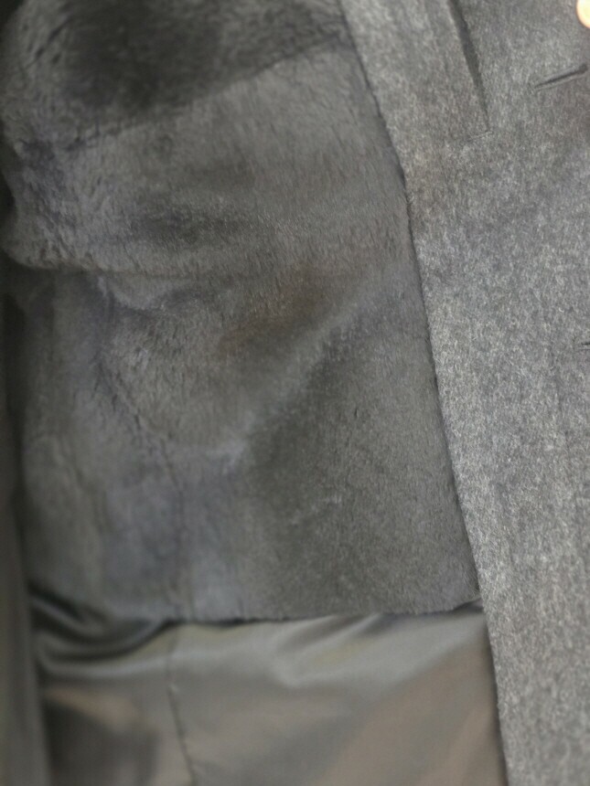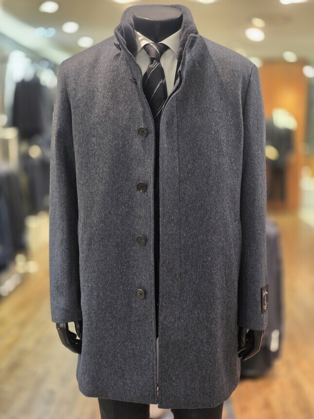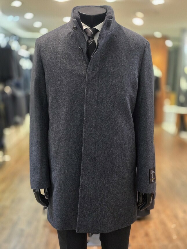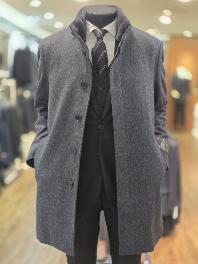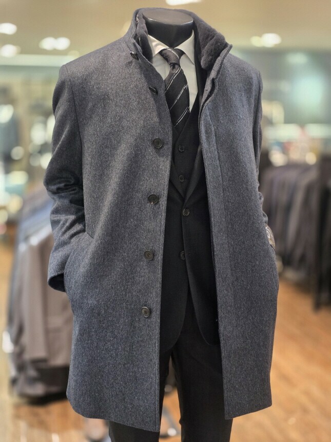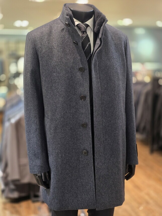 [바쏘옴므] 25년 F/W 차콜 그레이 안감 모피(토끼털)탈부착 울캐시미어 하프코트