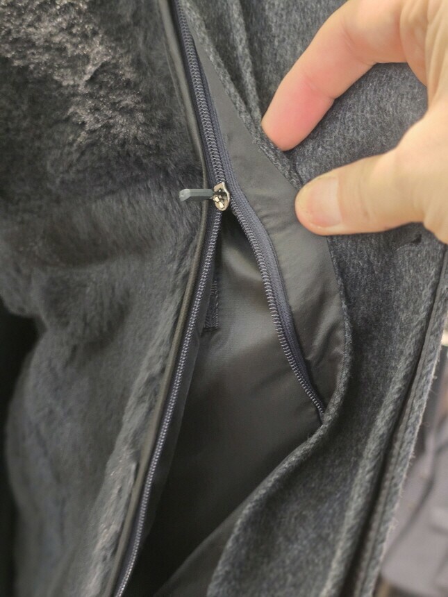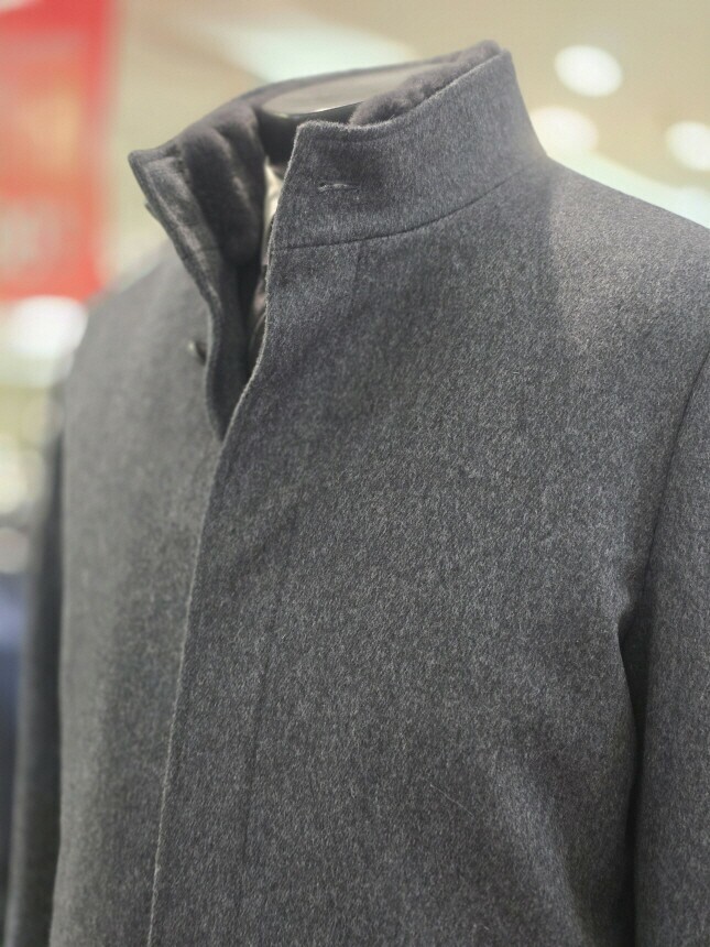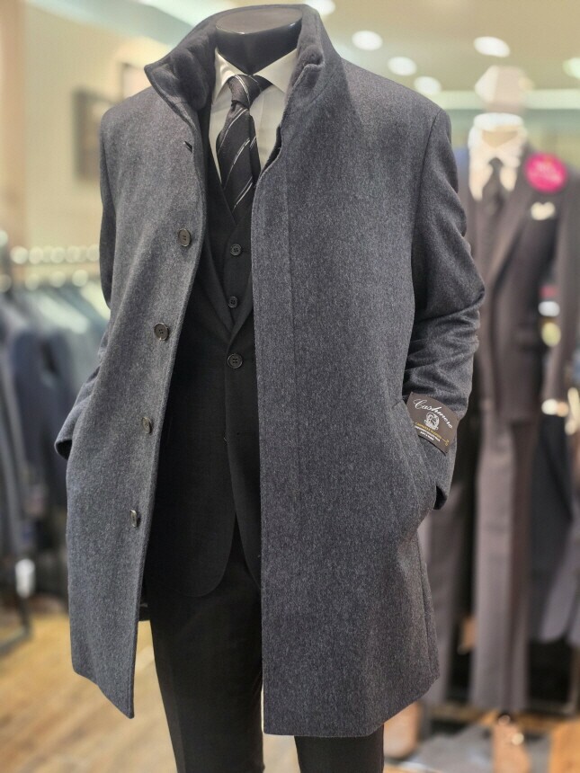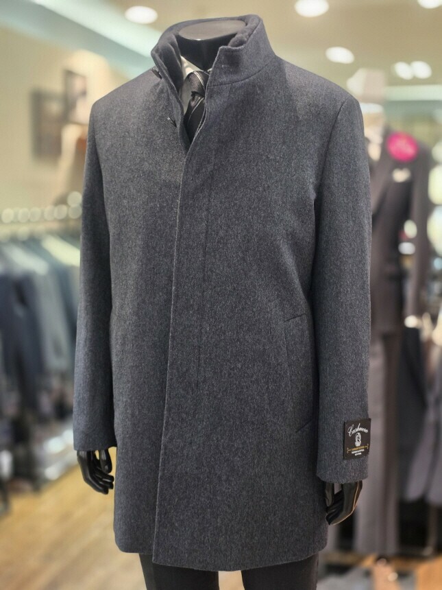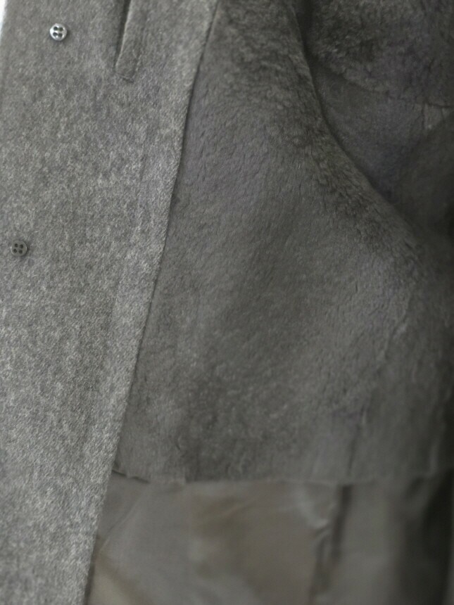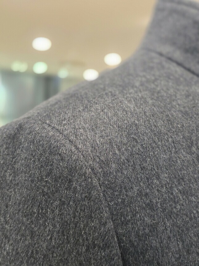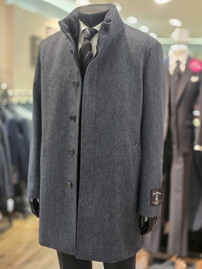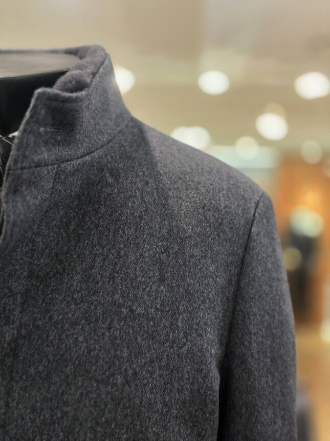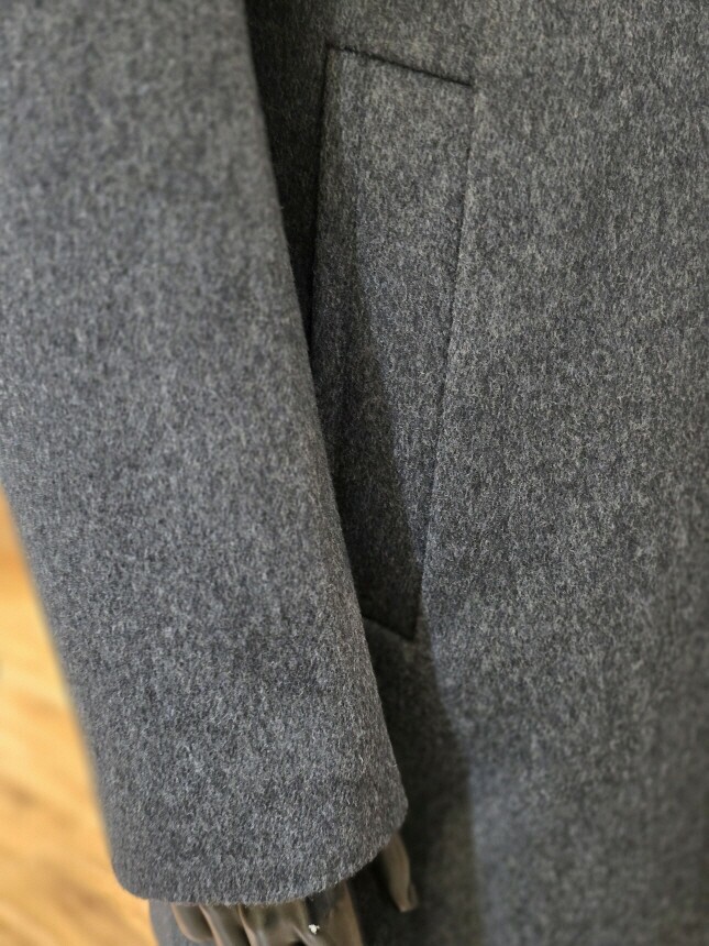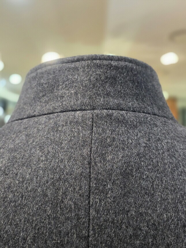 [바쏘옴므] 25년 F/W 차콜 그레이 안감 모피(토끼털)탈부착 울캐시미어 하프코트