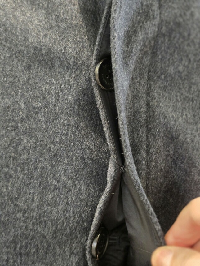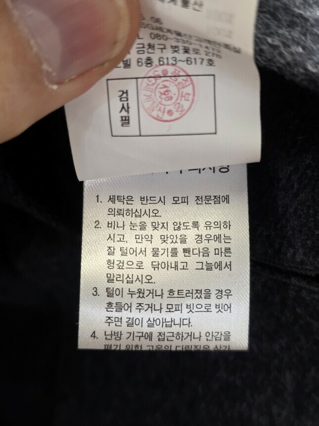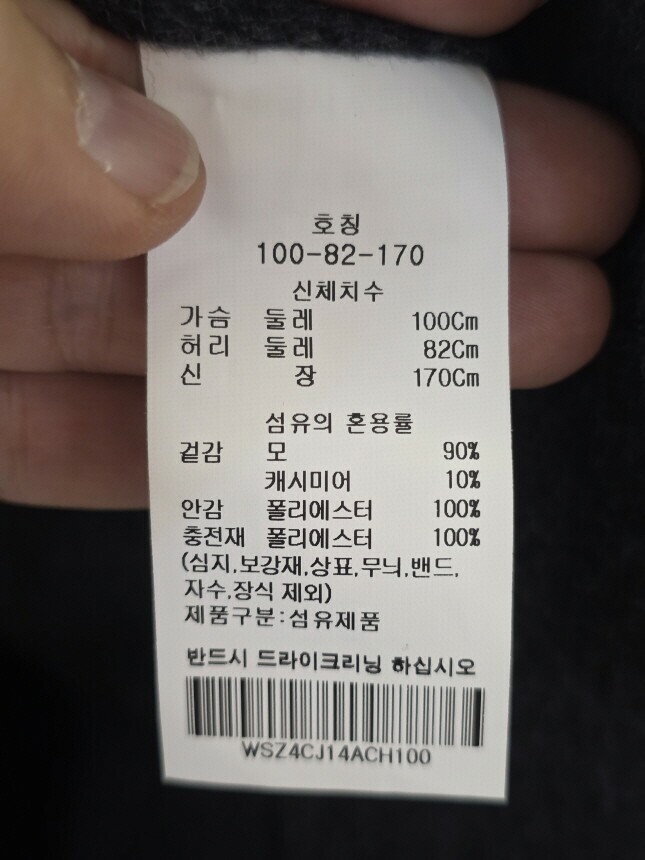 | 1. 제품 소재 (섬유의 조성 또는 혼용률을 백분율로 표시, 기능성인 경우 성적서 또는 허가서) | 겉감 : 모 90% , 캐시미어 10% 안감 : 폴리에스터 100% 충전재 : 폴 |