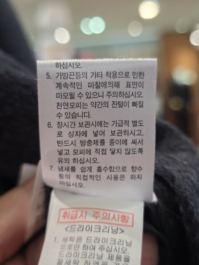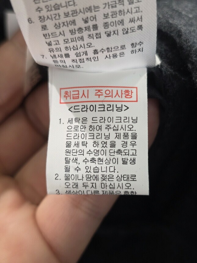 | 6. 세탁방법 및 취급시 주의사항 | 드라이크리닝 |
