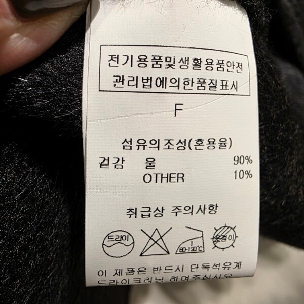 | 1. 제품 소재 (섬유의 조성 또는 혼용률을 백분율로 표시, 기능성인 경우 성적서 또는 허가서) | 울90% 기다 10% |
