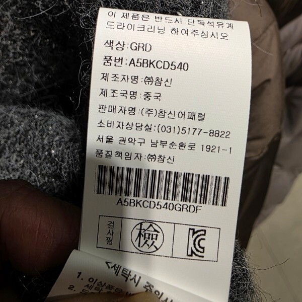 제조자 : (주)참신어패럴