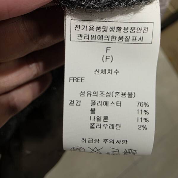 제품소재 : 폴리에스터 76% 울 11% 나일론 11% 폴리우레탄 2%