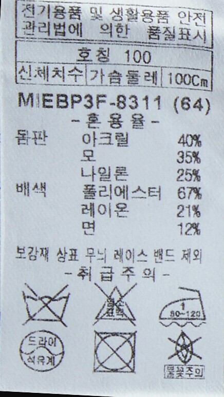 | 6. 세탁방법 및 취급시 주의사항 | 상세설명에 표시 |
