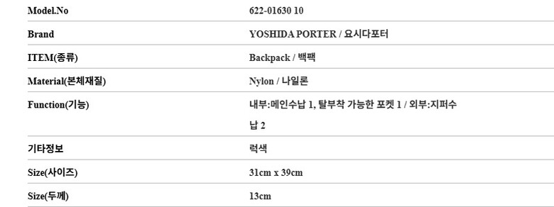 | 5. 제조사 | 요시다포터/ (주)언커먼레이블-병행수입 |