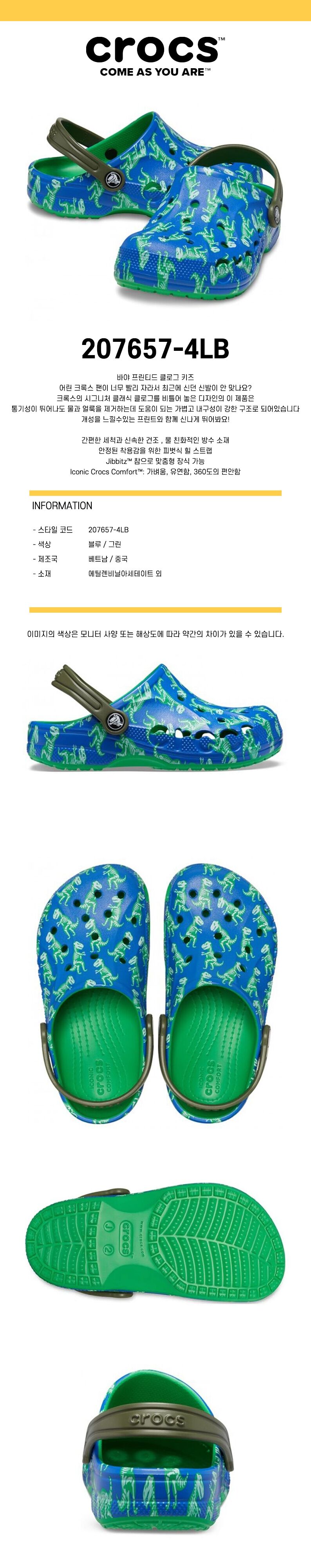 크록스 키즈 바야 프린티드 클로그 아동 샌들 슬리퍼 207657-4LB