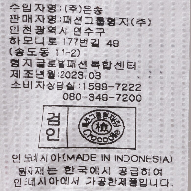 | 1. 제품 소재 (섬유의 조성 또는 혼용률을 백분율로 표시, 기능성인 경우 성적서 또는 허가서) | 상품상세참조 |
