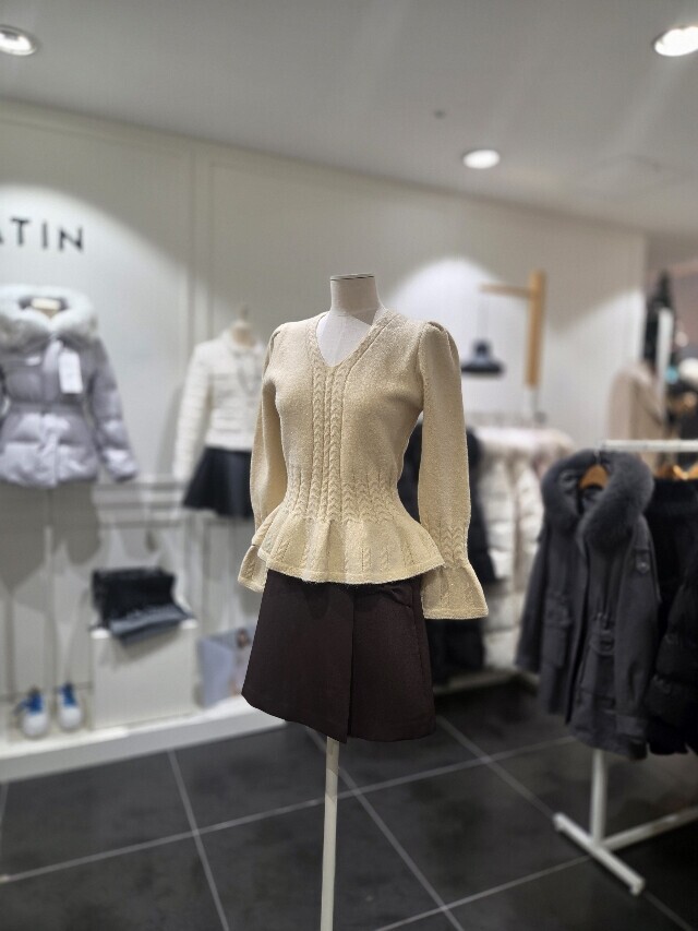 샤틴 페플럼 펄믹스 브이넥 니트 S254k969