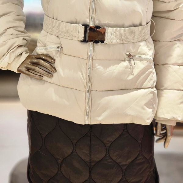 BFW5SNEJ9630_기모안감 셔링벨트 후드 패딩점퍼