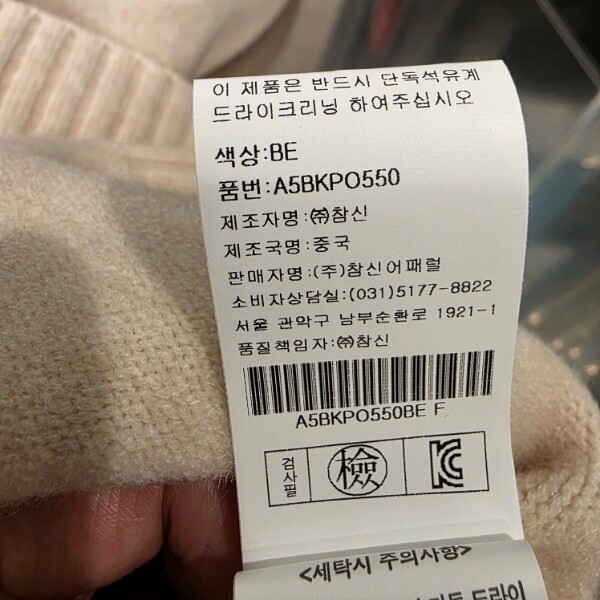 제품소재 : 폴리에스터 69% 아크릴 20% 나일론 11%