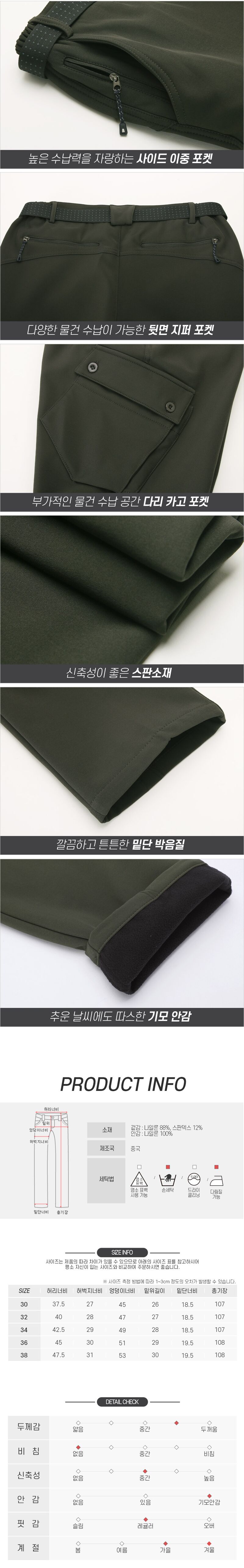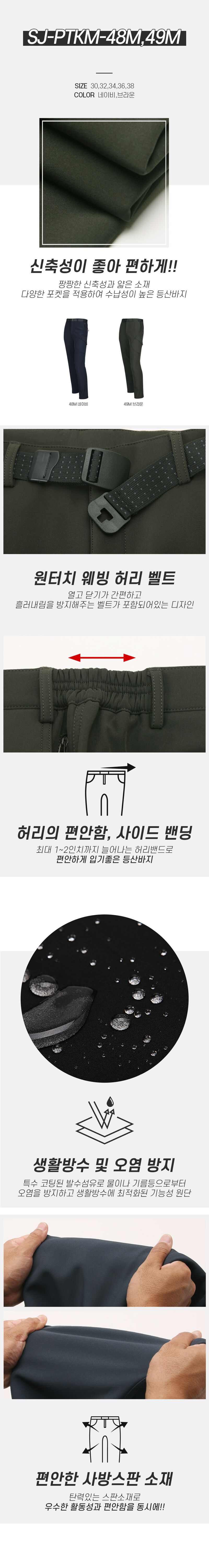 멘즈 신축성 좋은 웨빙벨트 기모안감 생활방수 아웃도어 팬츠 SJ-PTKM-48M,49M